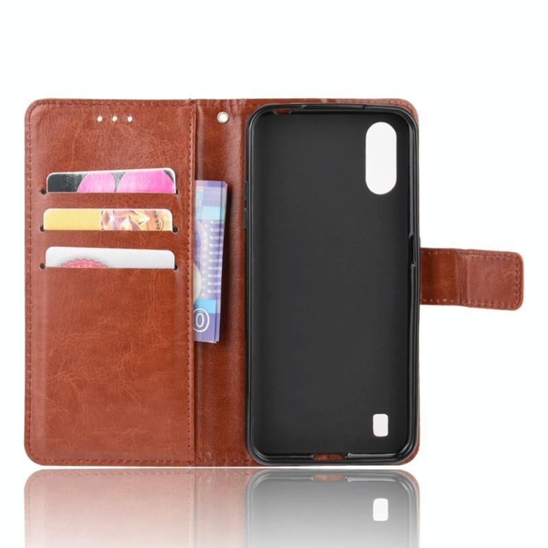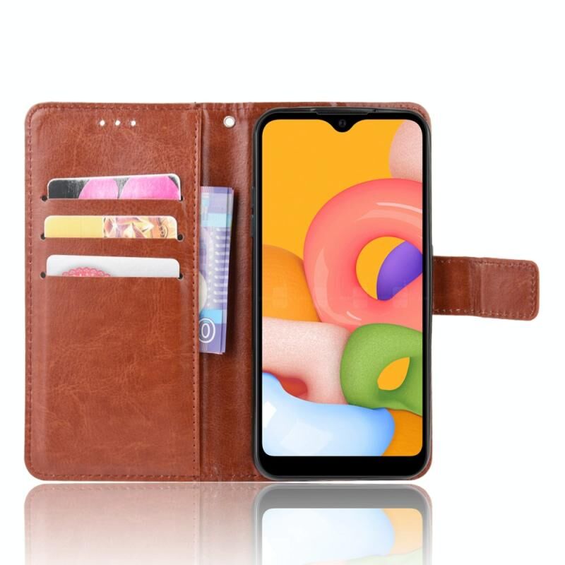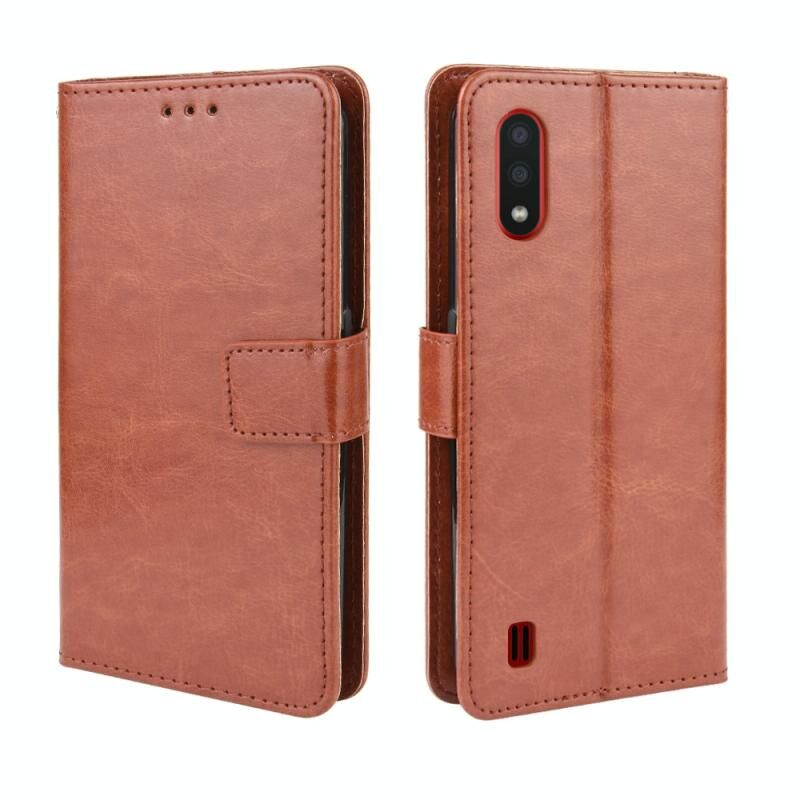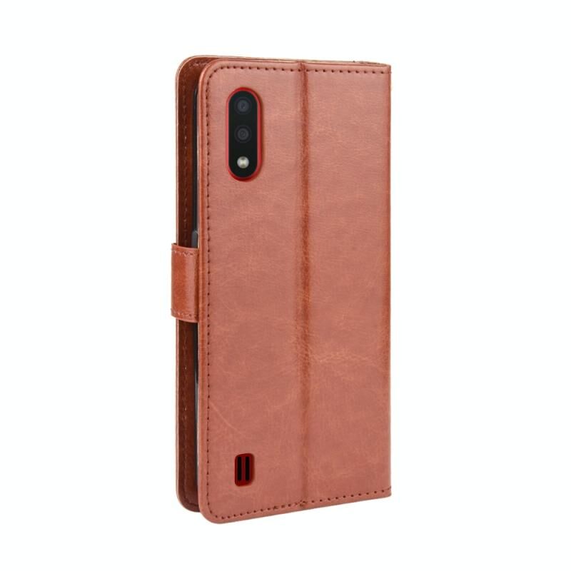 Για Galaxy A01 Ρετρό Crazy Horse Υφή οριζόντια Flip δερμάτινη θήκη με θήκη & υποδοχές καρτών & πλαίσιο φωτογραφιών (Καφέ)