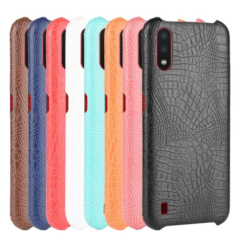 Θήκη για Galaxy A01 ανθεκτική στις κρούσεις με υφή κροκόδειλου, PC + PU (Ροζ)