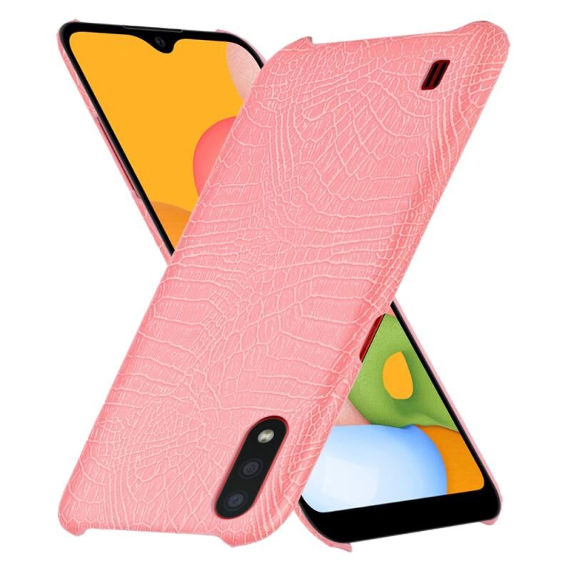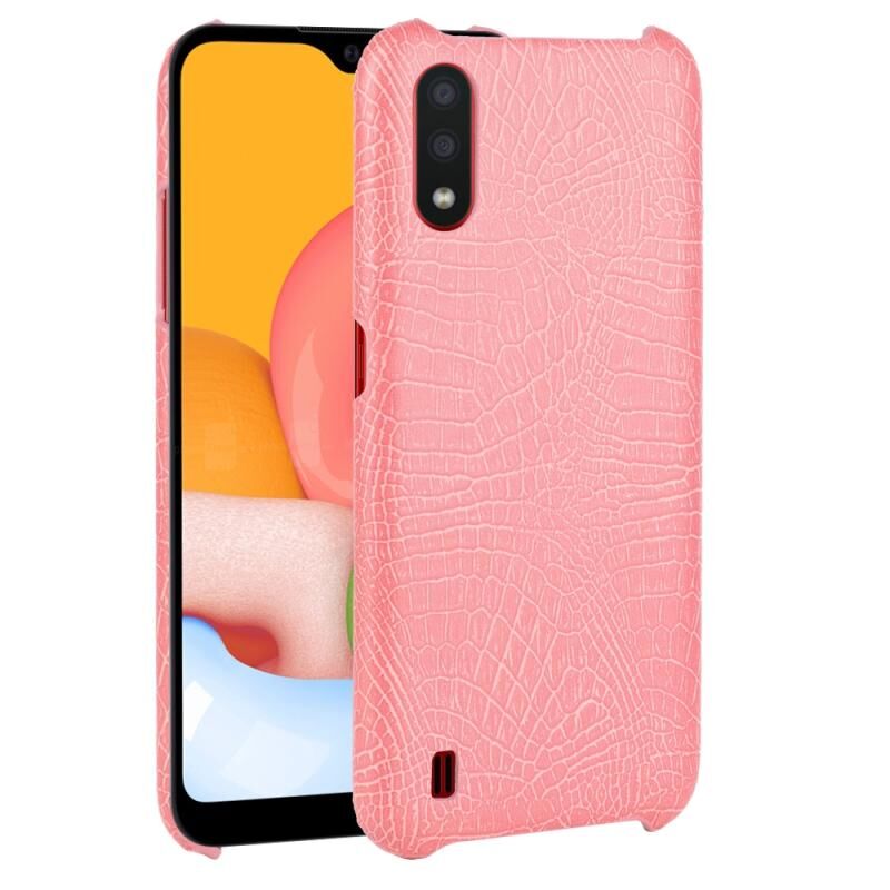 Θήκη για Galaxy A01 ανθεκτική στις κρούσεις με υφή κροκόδειλου, PC + PU (Ροζ)