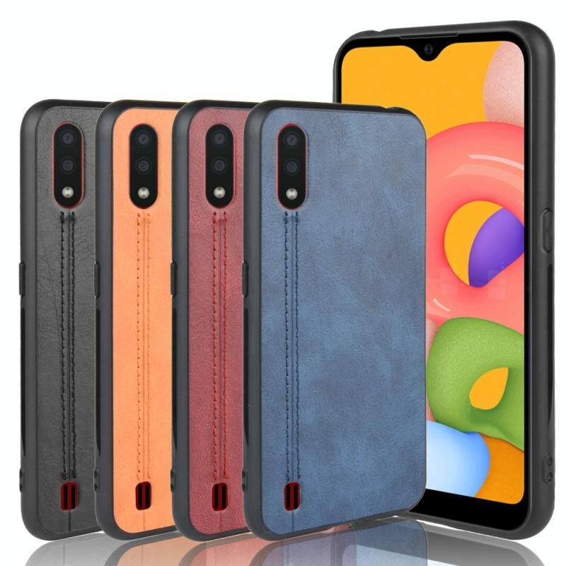 Για το Galaxy A01 Shockproof Ράψιμο μοτίβο αγελάδας δέρμα PC + PU + TPU υπόθεση (μαύρο)
