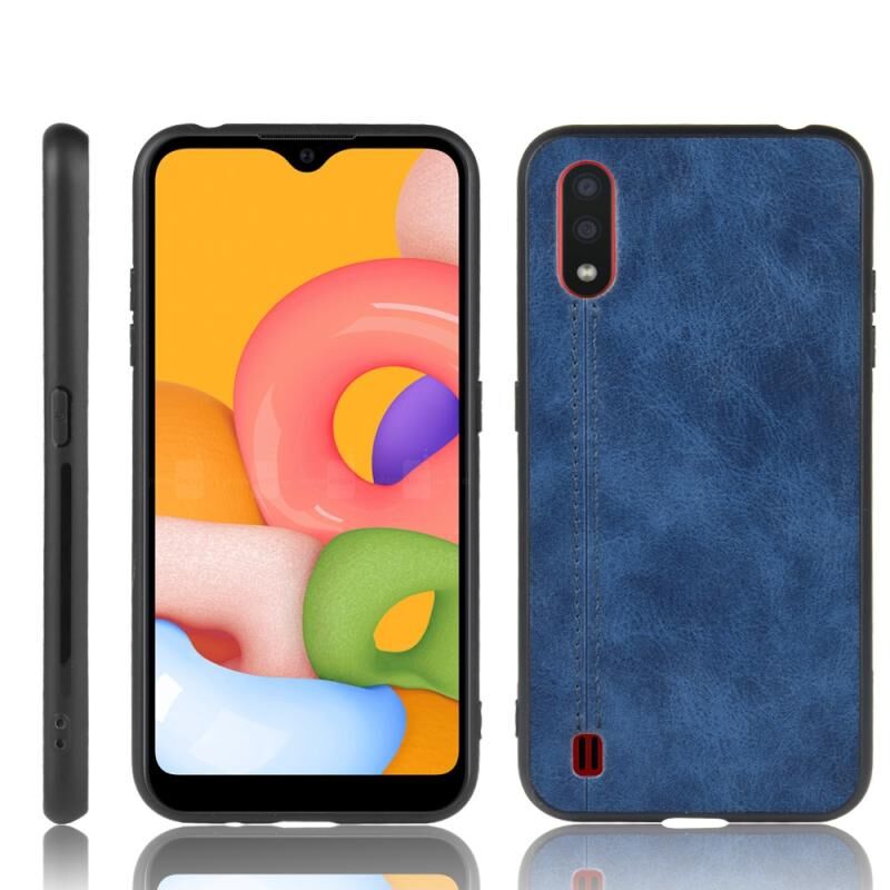 Για το Galaxy A01 Shockproof Ράψιμο μοτίβο αγελάδας δέρμα PC + PU + TPU υπόθεση (Μπλε)