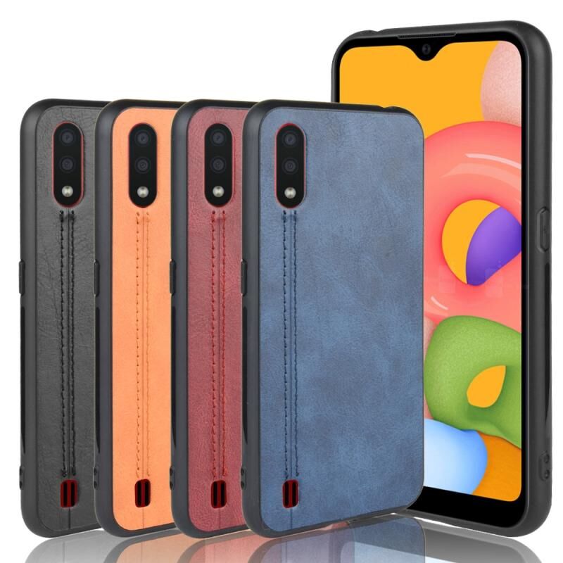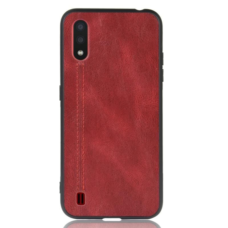 Για το Galaxy A01 Shockproof Ράψιμο μοτίβο αγελάδας δέρμα PC + PU + TPU υπόθεση (κόκκινο)