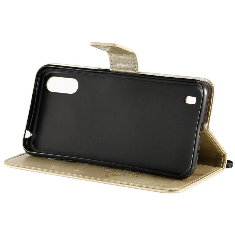 Θήκη για Galaxy A01 με σχέδιο Δέντρου & Γάτας, εκτύπωση με πίεση, οριζόντια, από δερματίνη PU με βάση & θήκες για κάρτες & πορτοφόλι & κορδόνι (Πράσινο)