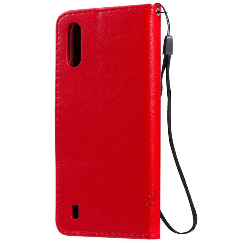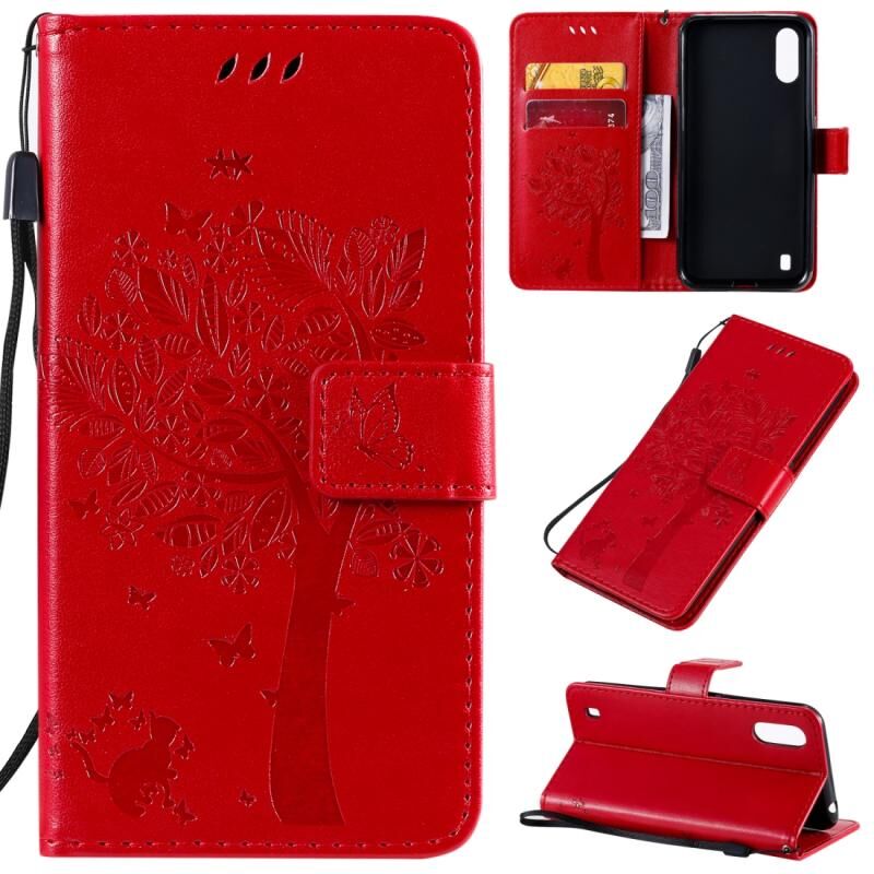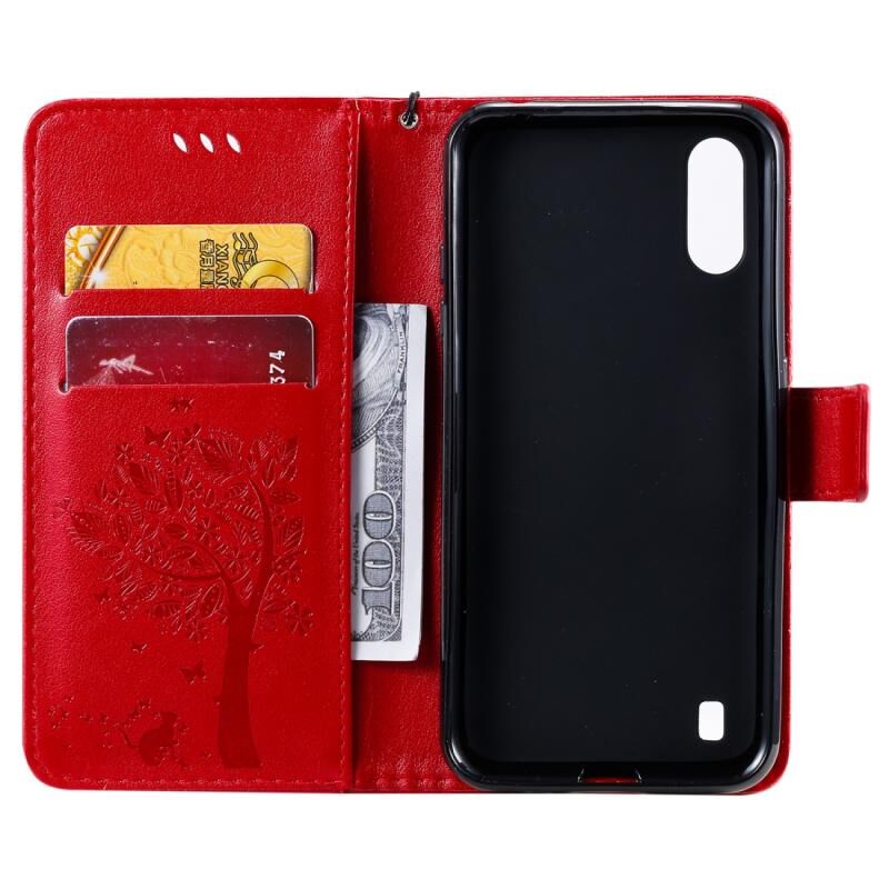 Θήκη για Galaxy A01 με σχέδιο Δέντρου & Γάτας, εκτύπωση με πίεση, οριζόντια, από δερματίνη PU με βάση & θήκες για κάρτες & πορτοφόλι & κορδόνι (Πράσινο)