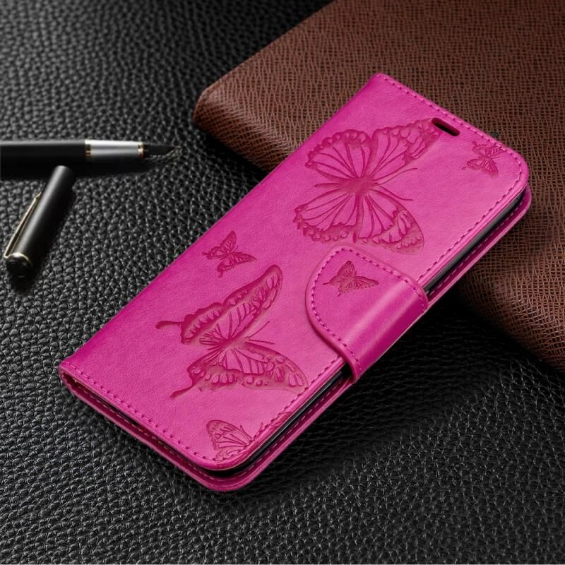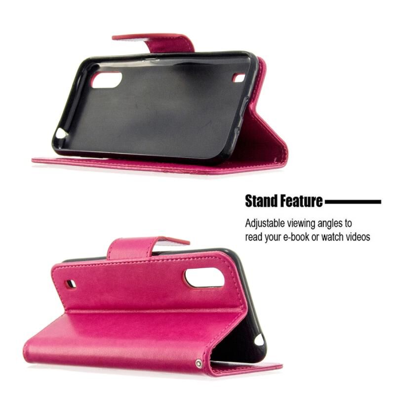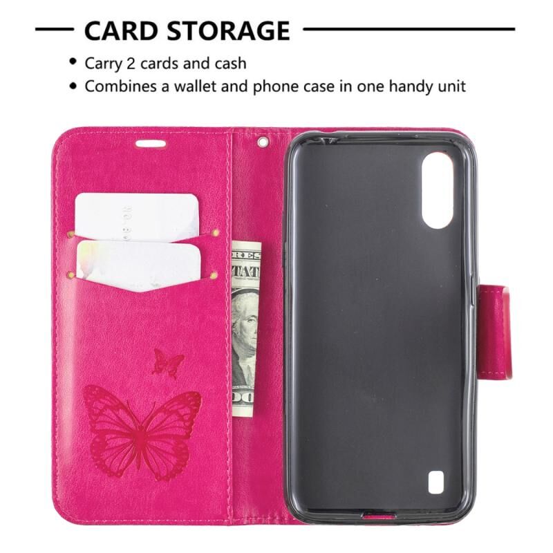 Θήκη δέρματος οριζόντιας αναδίπλωσης με σχέδιο δύο πεταλούδων σε ανάγλυφο για Galaxy A01 με βάση, θήκη για κάρτες, πορτοφόλι και κορδόνι (Πράσινο)