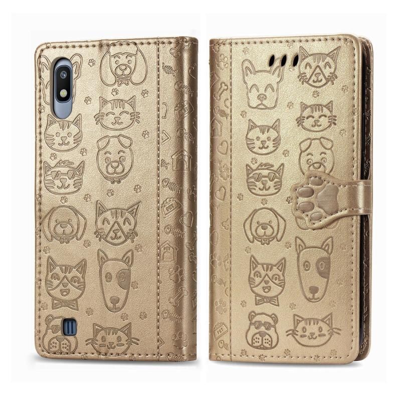 Θήκη δέρματος οριζόντιας αναδίπλωσης με ανάγλυφα σχέδια γατούλας και σκυλάκι για Galaxy A10, με βάση στήριξης / υποδοχή κάρτας / πορτοφόλι / κορδόνι (Ροζ)