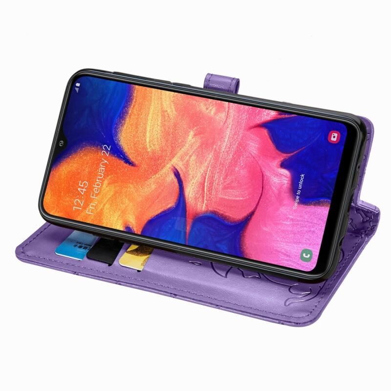 Θήκη δέρματος οριζόντιας αναδίπλωσης με ανάγλυφα σχέδια γατούλας και σκυλάκι για Galaxy A10, με βάση στήριξης / υποδοχή κάρτας / πορτοφόλι / κορδόνι (Χρυσό Ρόδι)