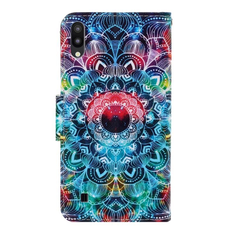 Θήκη 3D με έγχρωμη σχεδίαση, οριζόντια αναδίπλωση από δερματίνη PU για Galaxy A10 / M10 με βάση στήριξης & υποδοχές καρτών & πορτοφόλι (Mandala)