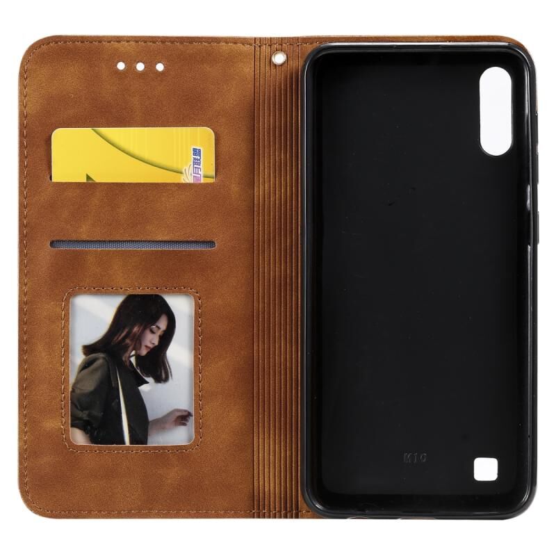 Θήκη δέρματος οριζόντιας αναδίπλωσης με μαγνητικό κλείσιμο και ανάγλυφο σχέδιο τυχερών λουλουδιών για Galaxy A10 / M10, με βάση στήριξης & θήκες καρτών (Σκούρο Μπλε)