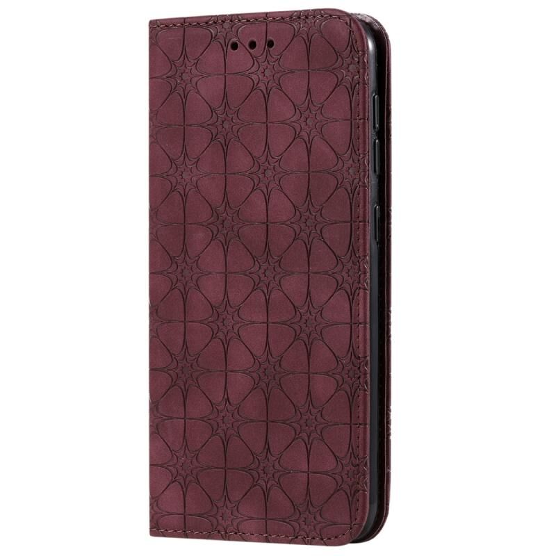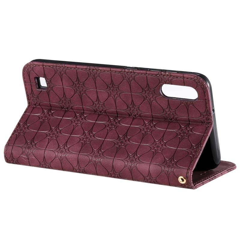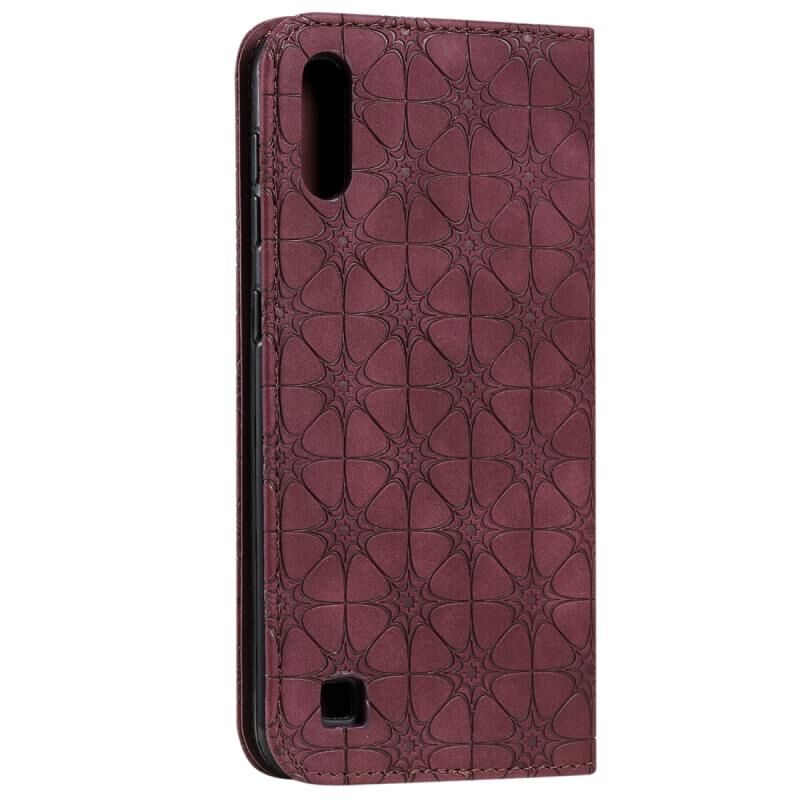 Θήκη δέρματος οριζόντιας αναδίπλωσης με μαγνητικό κλείσιμο και ανάγλυφο σχέδιο τυχερών λουλουδιών για Galaxy A10 / M10, με βάση στήριξης & θήκες καρτών (Σκούρο Μπλε)