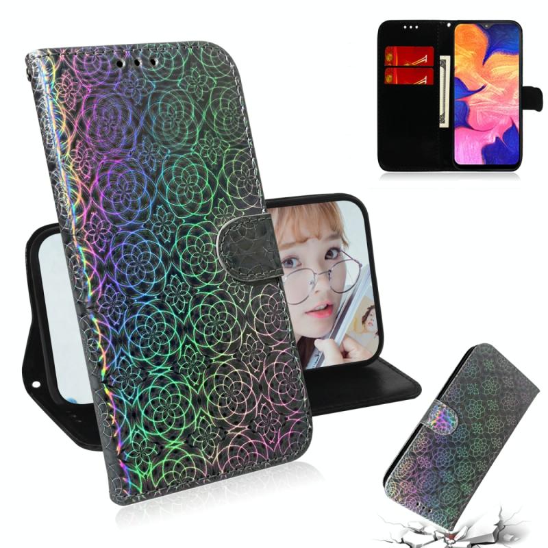 Για Galaxy A10 / M10 Μονόχρωμη Πολύχρωμη Μαγνητική Αγκράφα Οριζόντια Θήκη Flip από Δερματίνη PU με Στήριξη & Θήκες Καρτών & Πορτοφόλι & Λουρί (Ασημί)