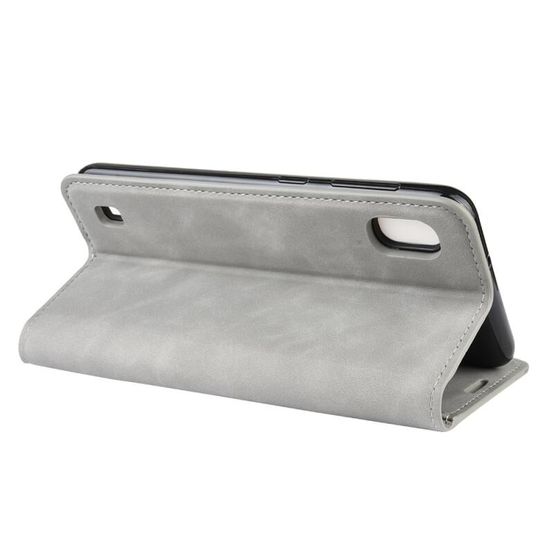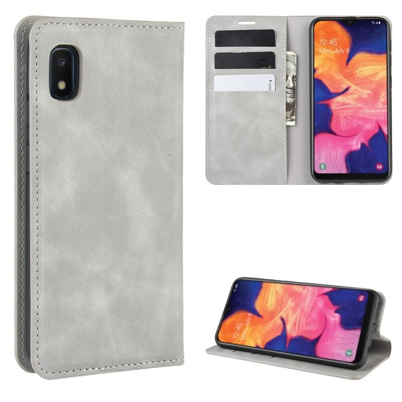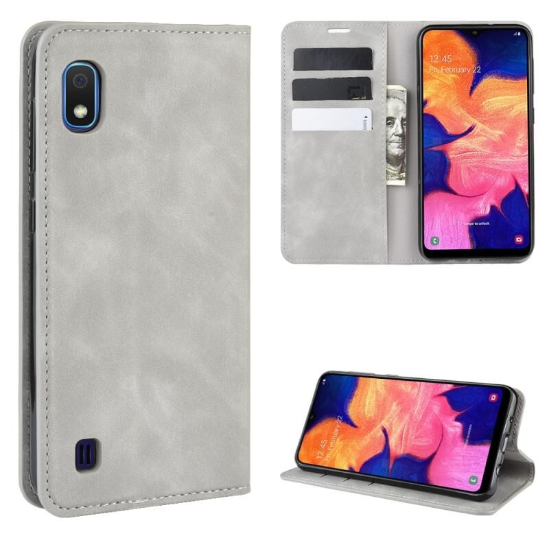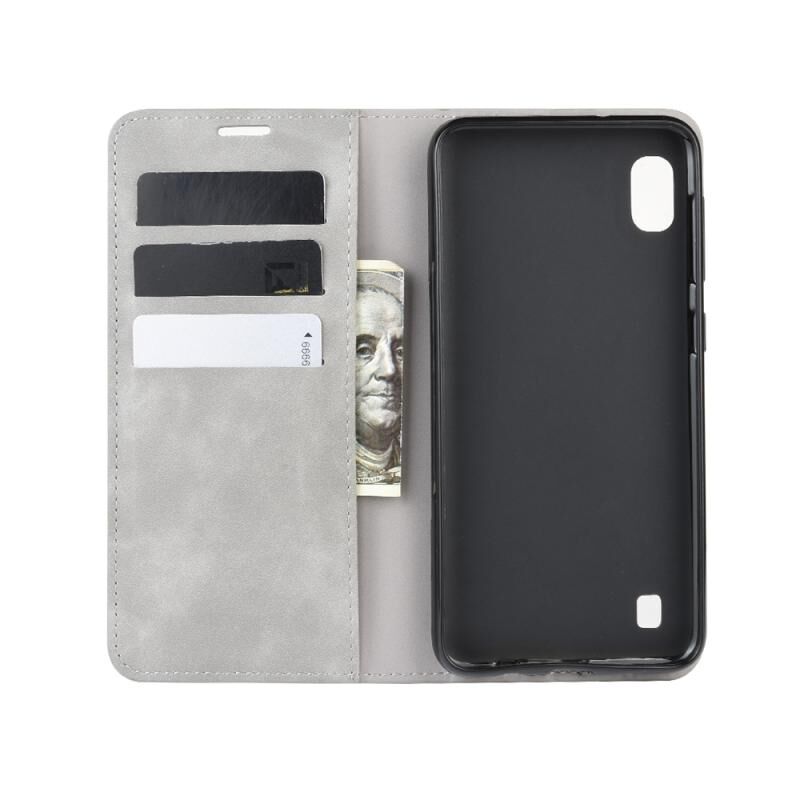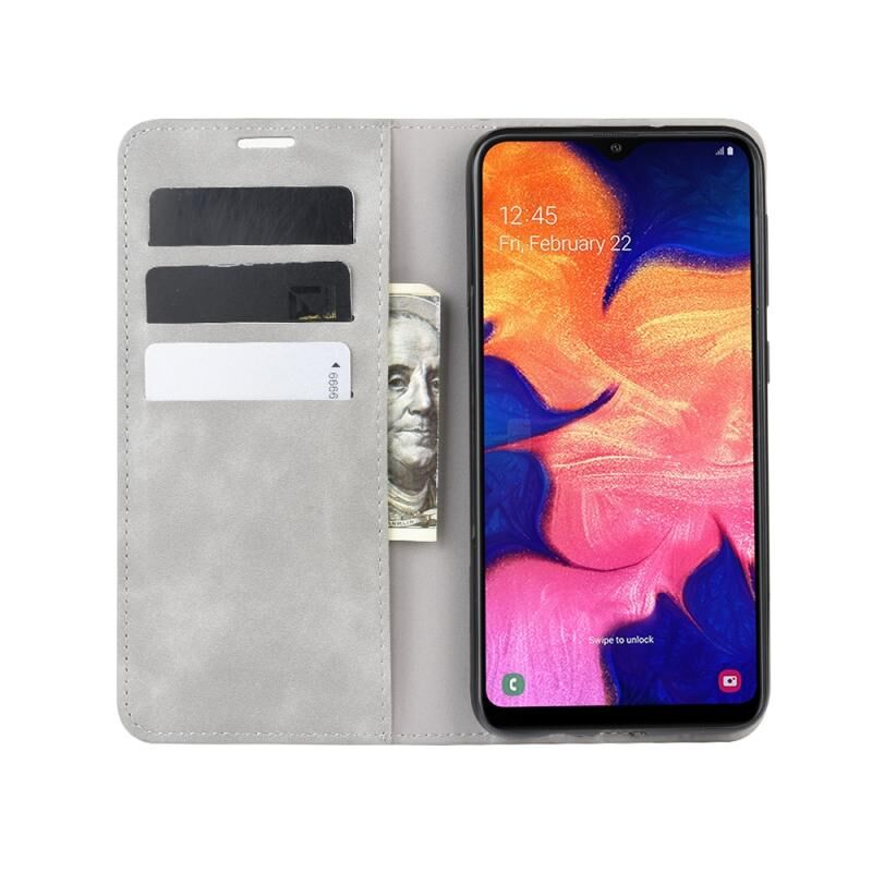Θήκη δερμάτινη με μαγνητική απορρόφηση για Galaxy A10, με σχέδιο retro, επαγγελματική, με βάση στήριξης & θήκες για κάρτες & πορτοφόλι (Μαύρο)