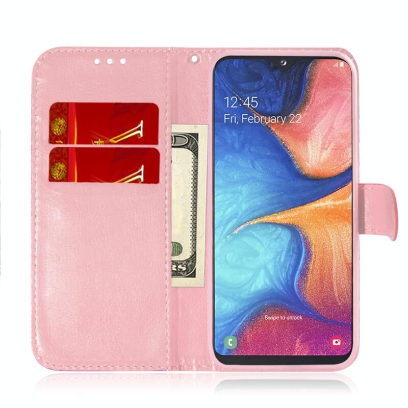 Για Galaxy A10e / A20e Μονόχρωμη Πολύχρωμη Μαγνητική Αγκράφα Οριζόντια Θήκη Flip από Δερματίνη PU με Στήριξη & Θήκες Καρτών & Πορτοφόλι & Λουρί (ρόζ)
