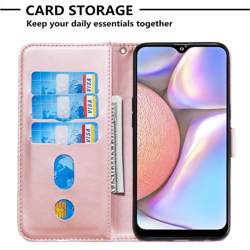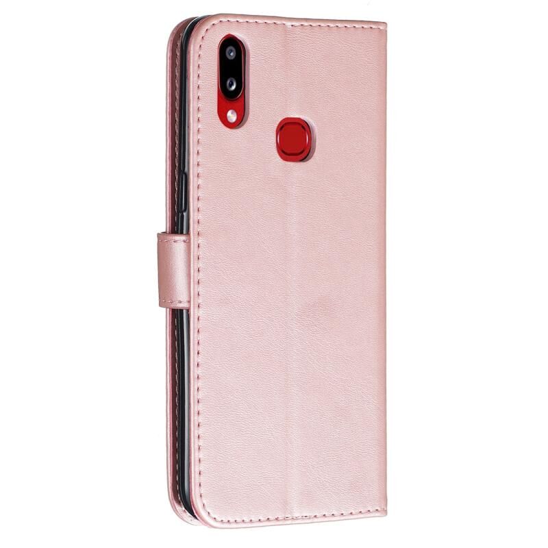 Για Galaxy A10s Μόδα μοσχάρι υφή φερμουάρ οριζόντια Flip PU δερμάτινη θήκη, με θήκη & υποδοχές για κάρτες & πορτοφόλι (Ροζ χρυσός)