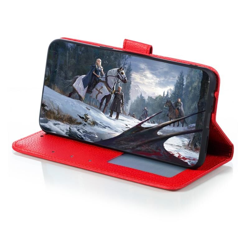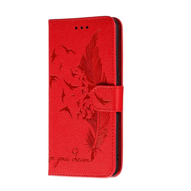 Για Galaxy A10s φτερό μοτίβο Litchi υφή οριζόντια Flip δερμάτινη θήκη με θήκη & πορτοφόλι & υποδοχές για κάρτες (κόκκινο)