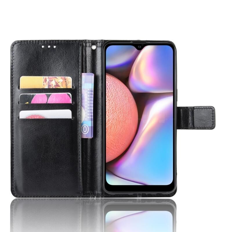 Για Galaxy A10s Ρετρό Crazy Horse Υφή Οριζόντια Flip δερμάτινη θήκη με θήκη & υποδοχές καρτών & πλαίσιο φωτογραφιών (Μαύρο)