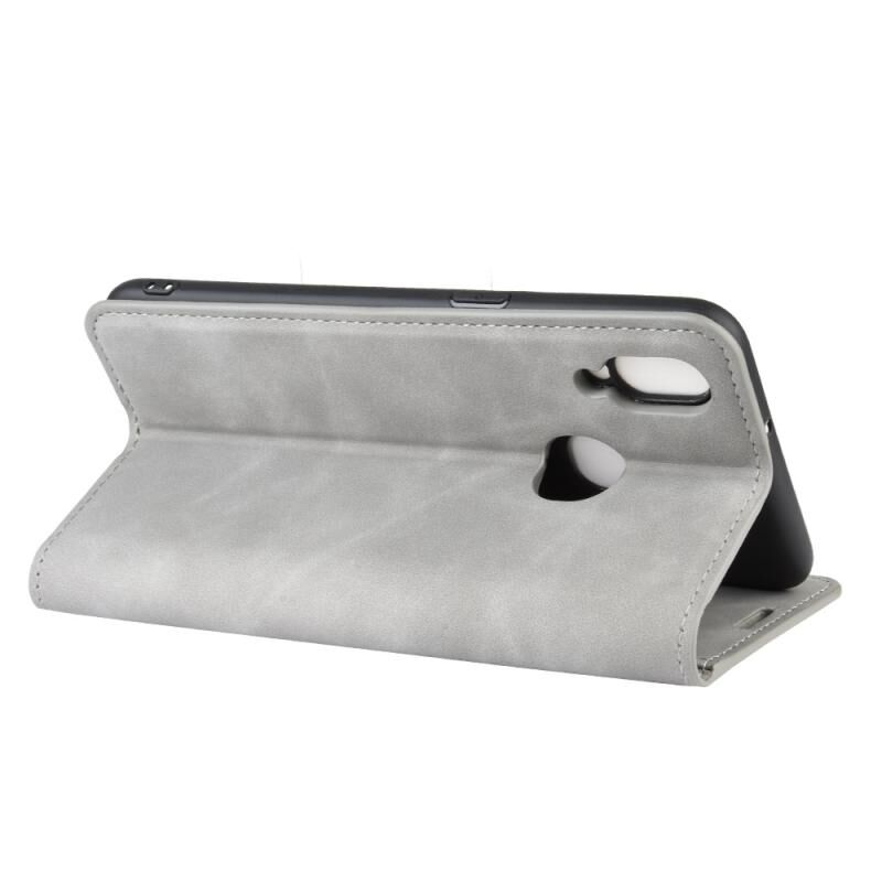 Για Galaxy A10s Retro-skin Business Μαγνητική δερμάτινη θήκη αναρρόφησης με θήκη & υποδοχές καρτών & πορτοφόλι (γκρι)