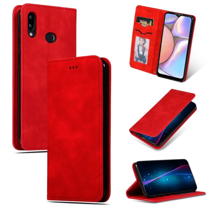 Για Galaxy A10S Retro δέρμα αίσθηση Business μαγνητική οριζόντια Flip δερμάτινη θήκη (κόκκινο)