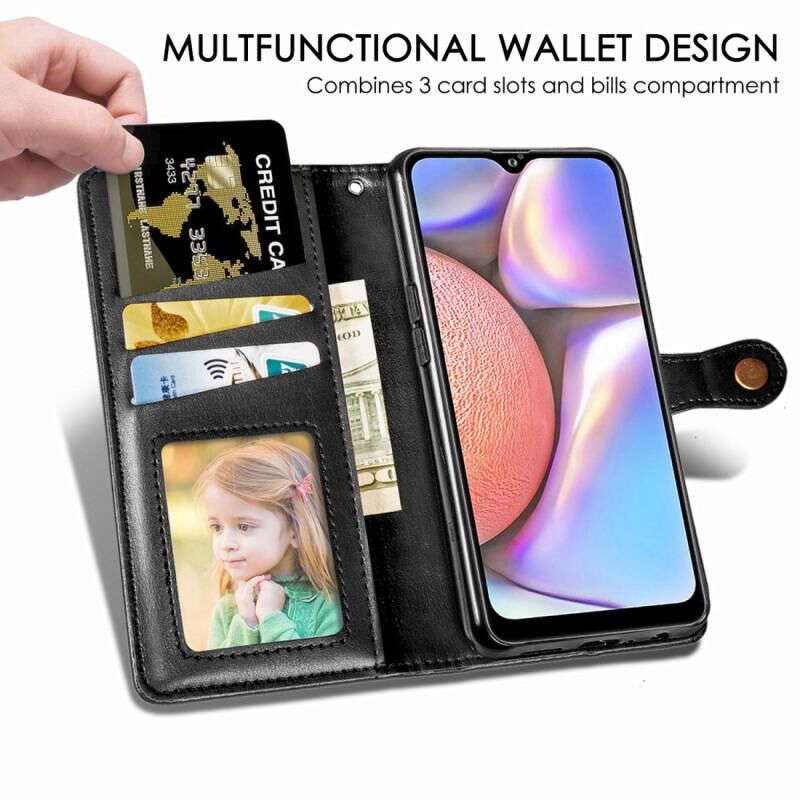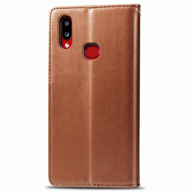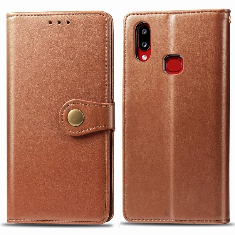 Για Galaxy A10S Ρετρό στερεό χρώμα δέρμα αγκράφα υπόθεση τηλεφώνου με κορδόνι & πλαίσιο φωτογραφιών & υποδοχή κάρτας & πορτοφόλι & λειτουργία Stand (Καφέ)