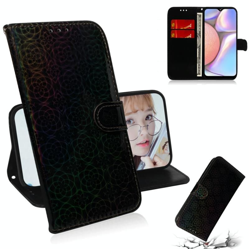 For Galaxy A10s Solid Color Colorful Magnetic Buckle Horizontal Flip PU Leather Case with Holder & Card Slots & Wallet & Lanyard(Black)