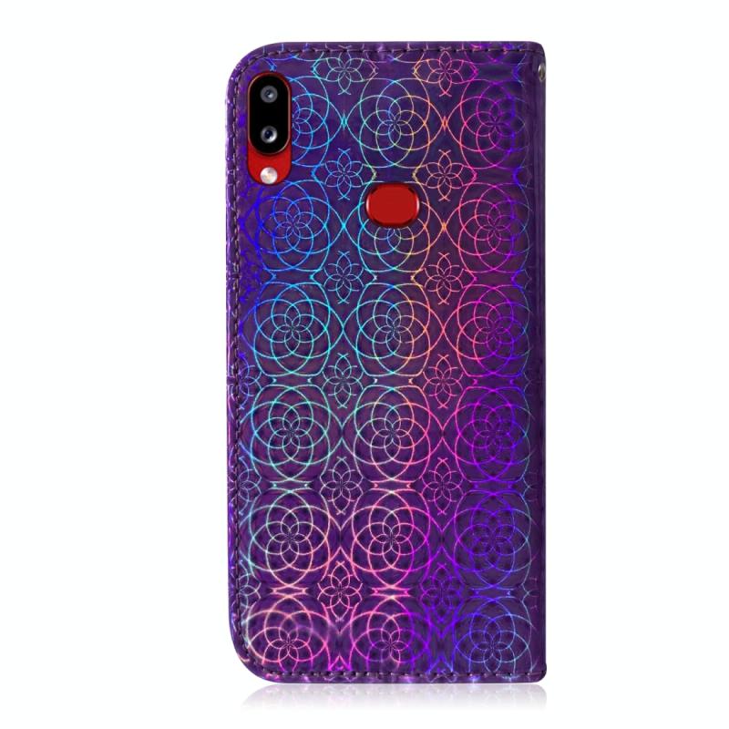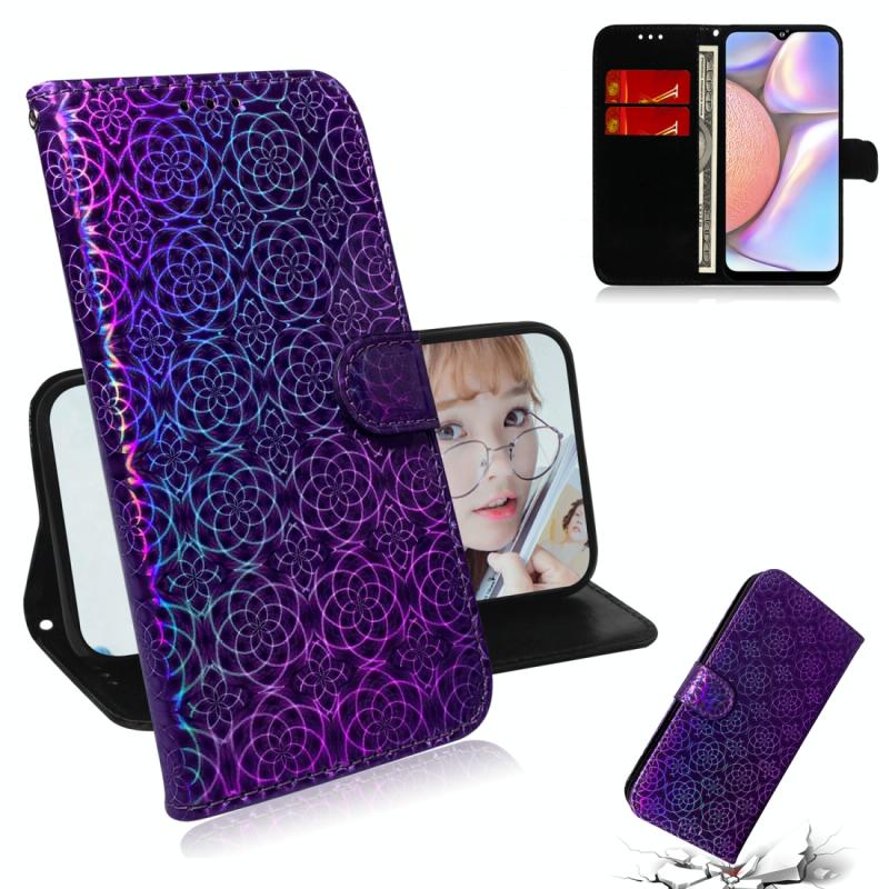 For Galaxy A10s Solid Color Colorful Magnetic Buckle Horizontal Flip PU Leather Case with Holder & Card Slots & Wallet & Lanyard(Purple)