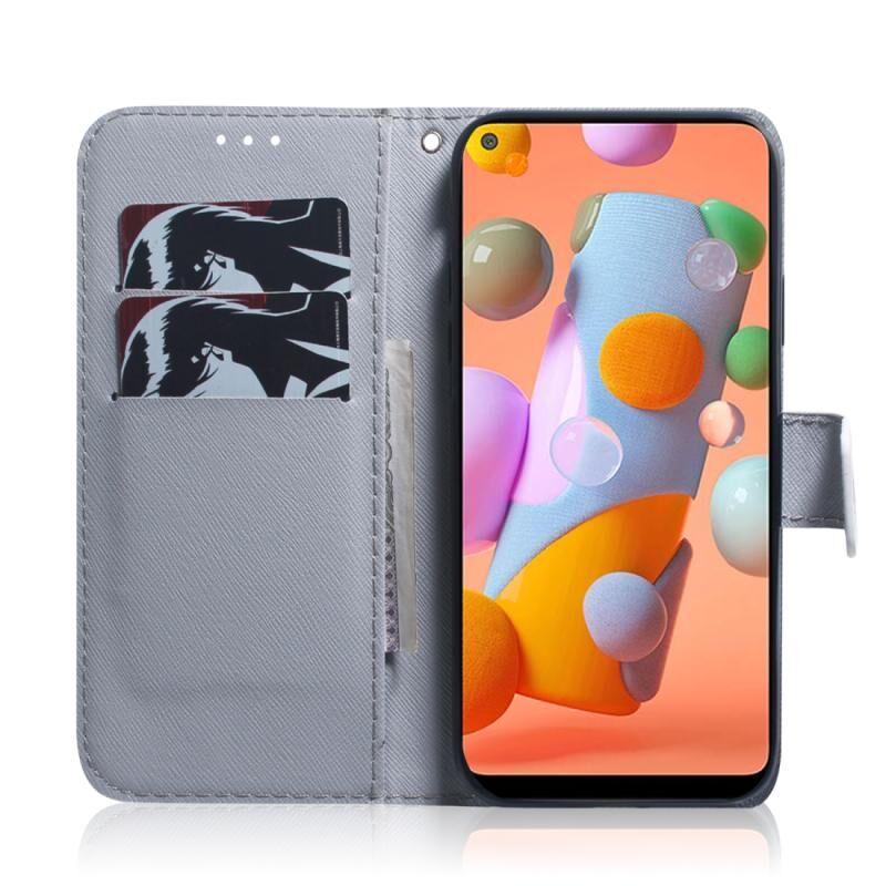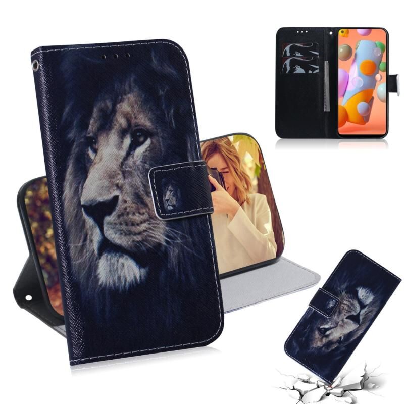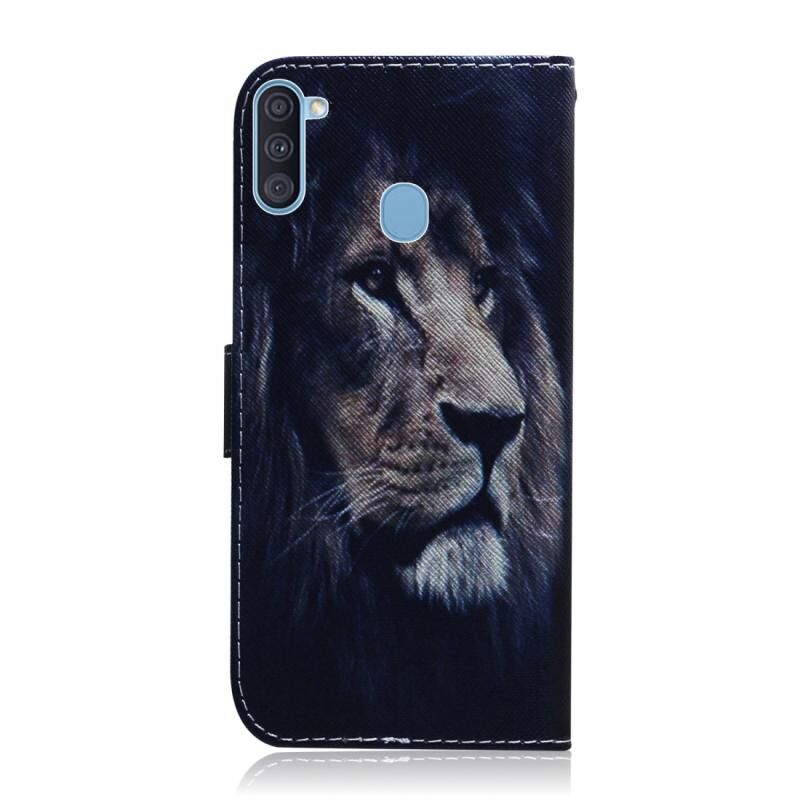 Θήκη δέρματος οριζόντιας αναδίπλωσης με σχέδιο και χρώματα για Galaxy A11 & M11 με βάση στήριξης & θήκη για κάρτες & πορτοφόλι (Λιοντάρι)