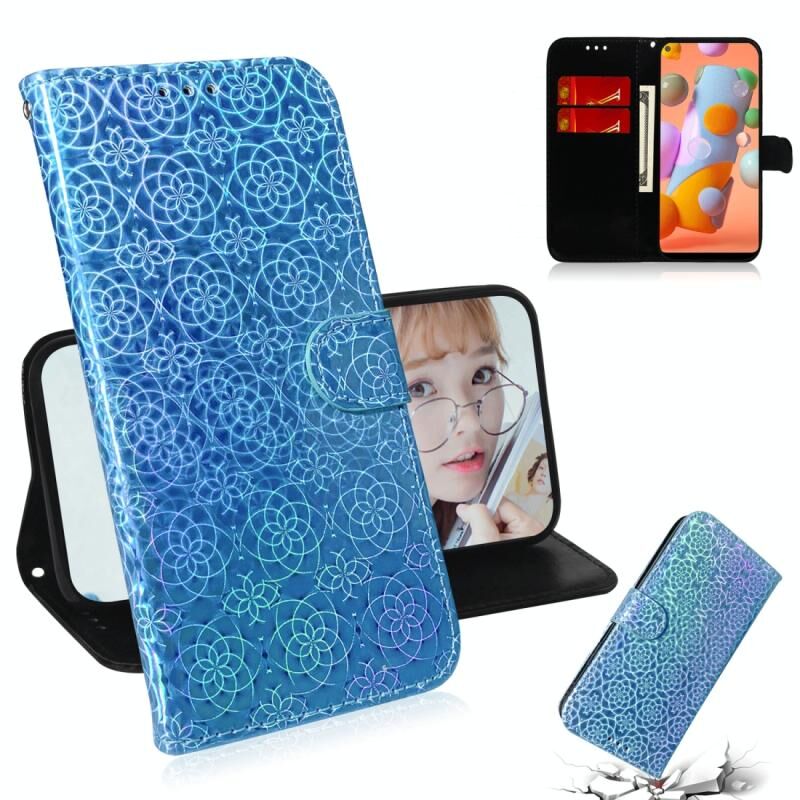 Για Galaxy A11 & M11 Αμιγές χρώμα πολύχρωμο μαγνητικό πόρπη οριζόντια Flip PU δέρμα υπόθεση με κάτοχο & υποδοχές για κάρτες & πορτοφόλι & Lanyard (μπλε)