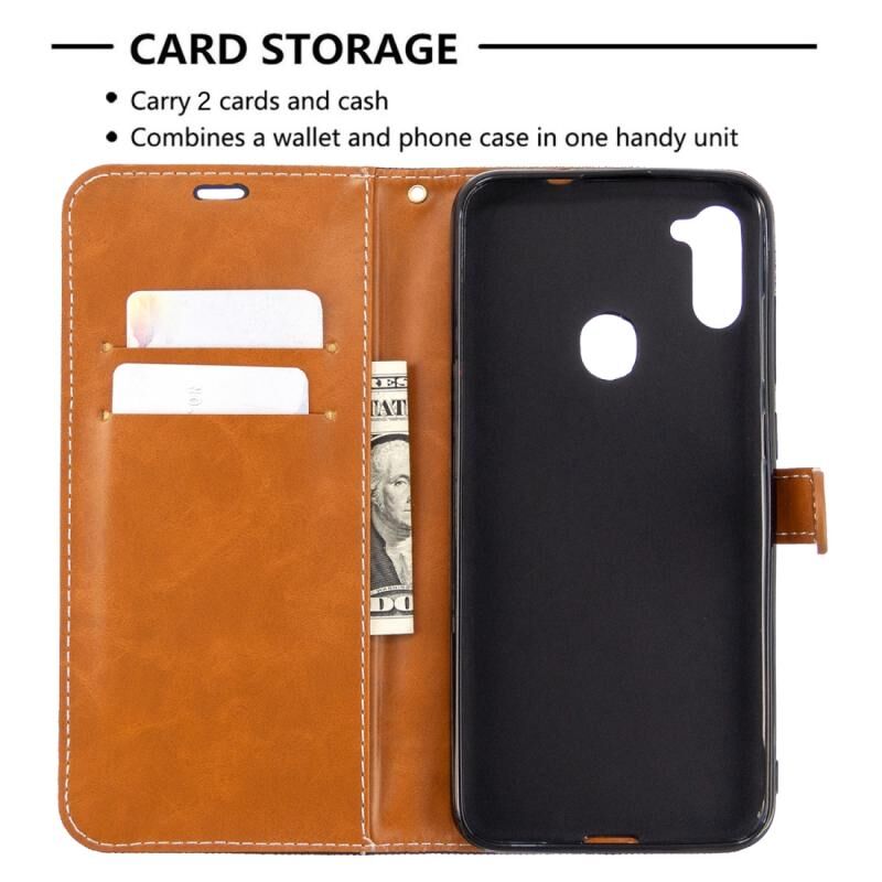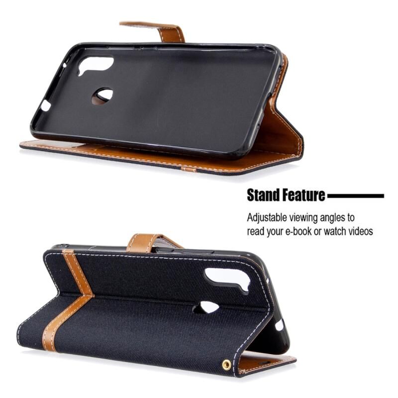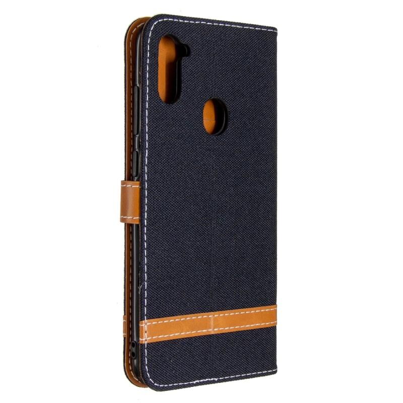 Για Galaxy A11 Χρώμα Matching Denim Υφή Οριζόντια Flip δερμάτινη θήκη με θήκη & υποδοχές για κάρτες & πορτοφόλι & κορδόνι (Μαύρο)