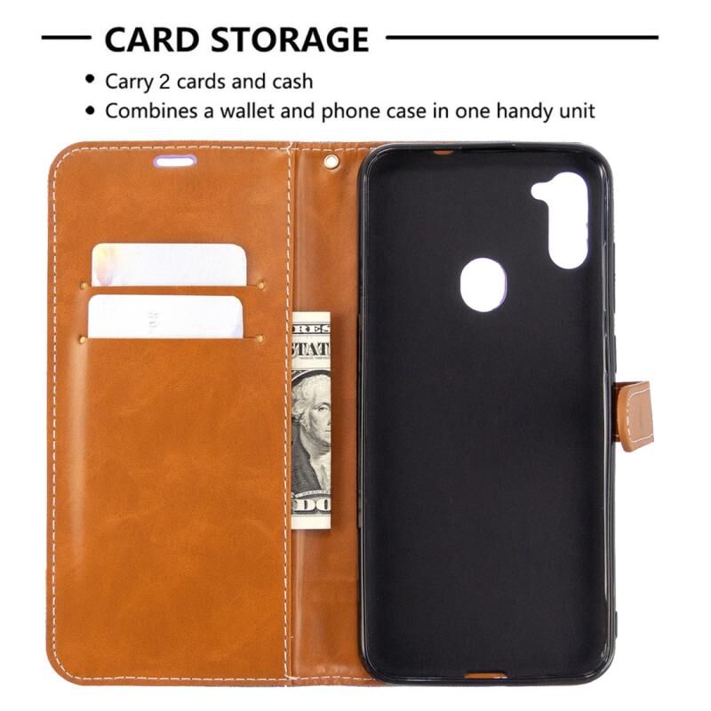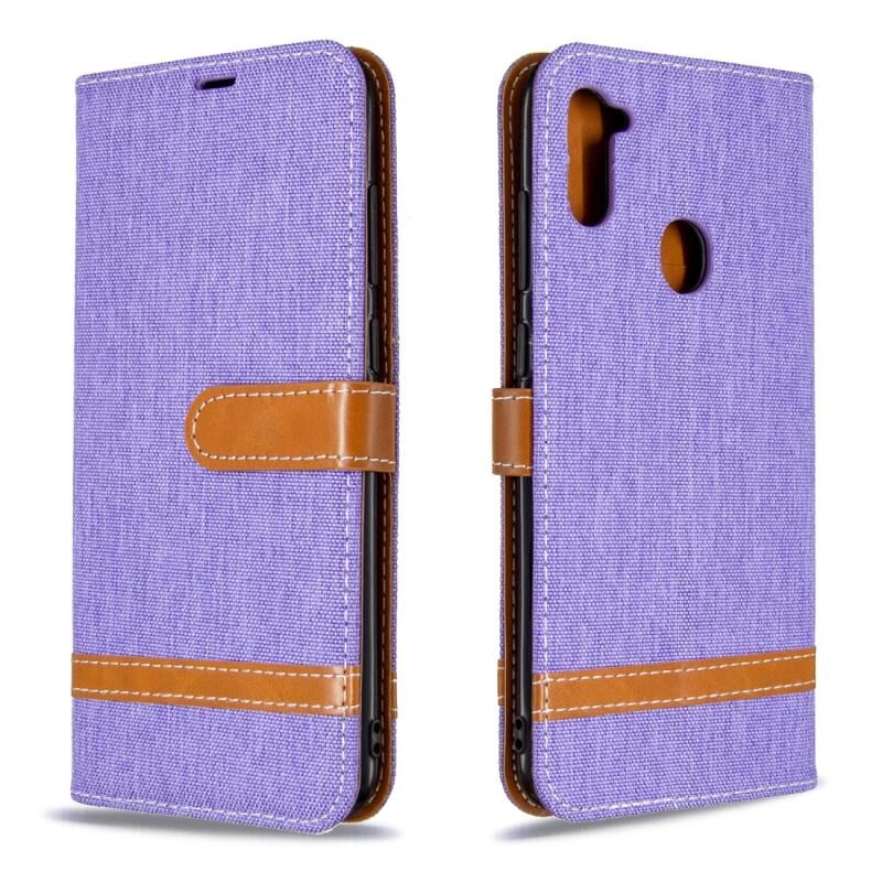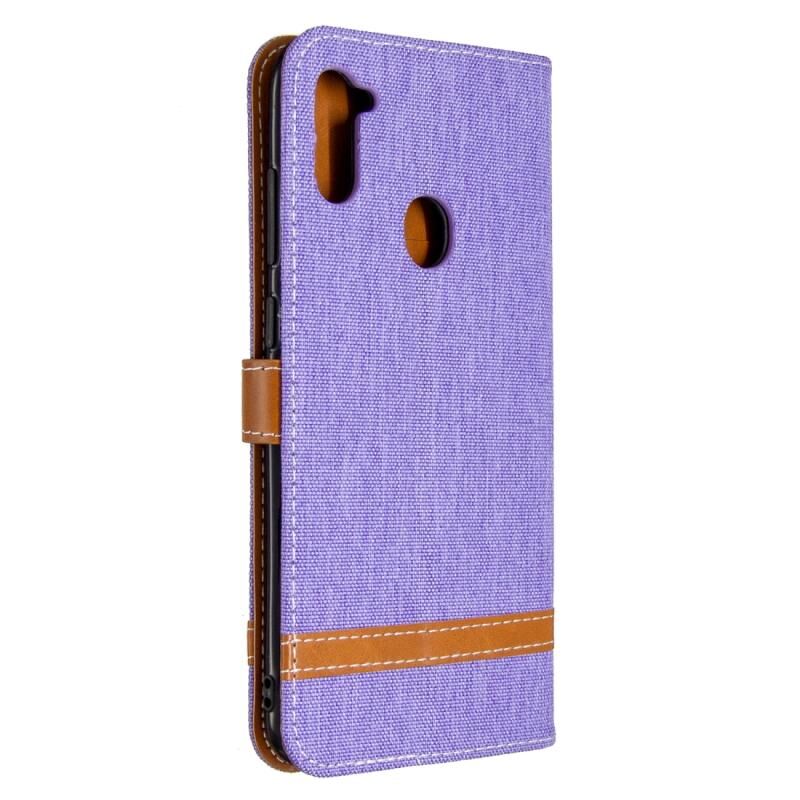 Για Galaxy A11 Χρώμα Matching Denim Υφή Οριζόντια Flip δερμάτινη θήκη με θήκη & υποδοχές για κάρτες & πορτοφόλι & κορδόνι (μωβ)
