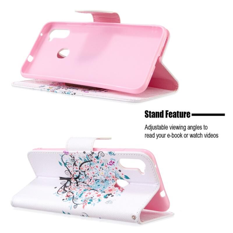 Θήκη δέρματος οριζόντιας αναδίπλωσης με σχέδιο πολύχρωμης ζωγραφικής για Galaxy A11 με βάση & υποδοχές καρτών & πορτοφόλι (Κόκκινο)