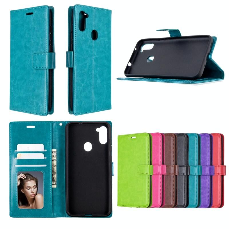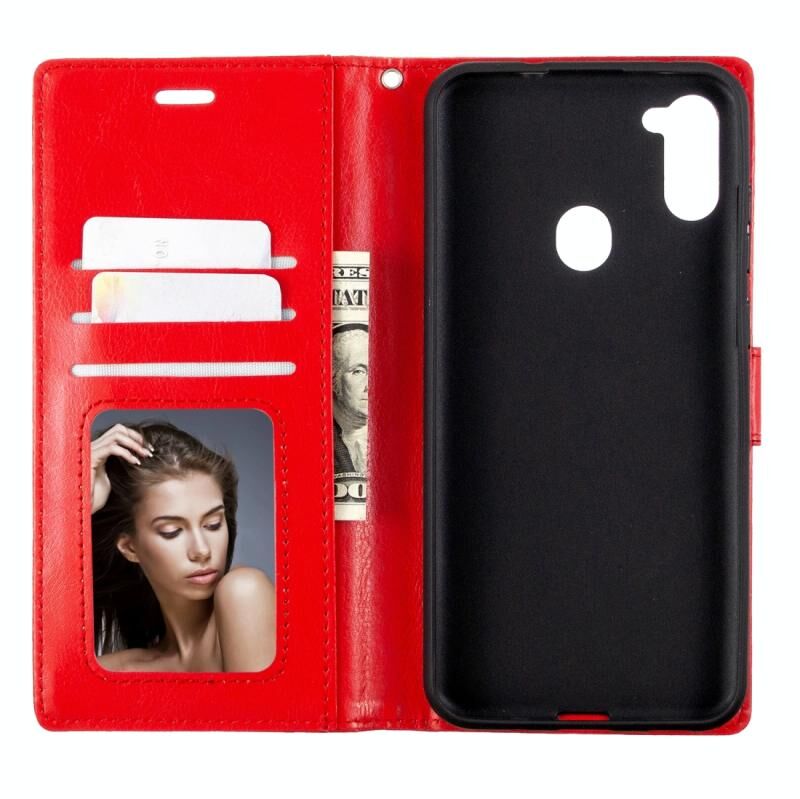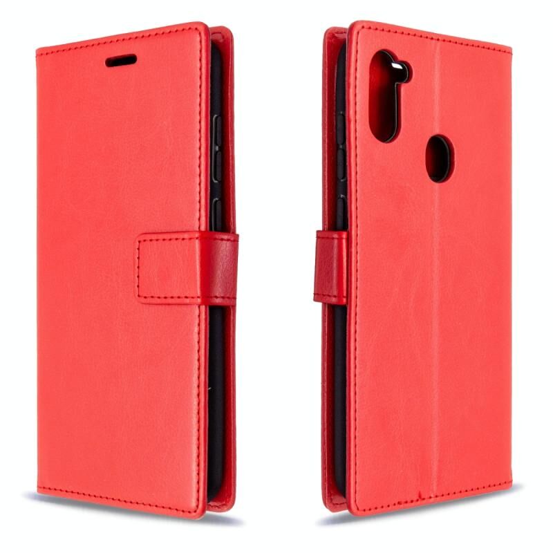 Για Galaxy A11 Crazy Horse Υφή οριζόντια Flip δερμάτινη θήκη με θήκη & υποδοχές για κάρτες & πορτοφόλι & κορνίζα φωτογραφιών (Κόκκινο)