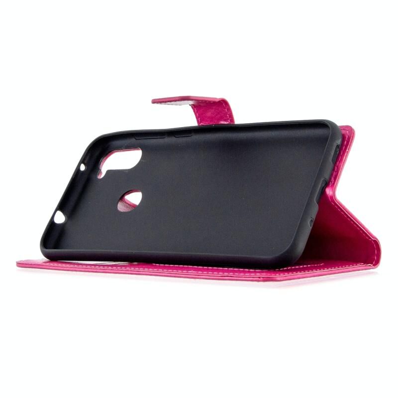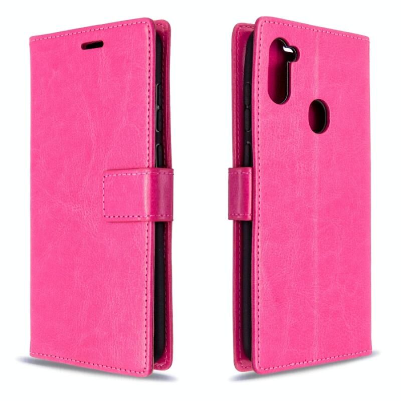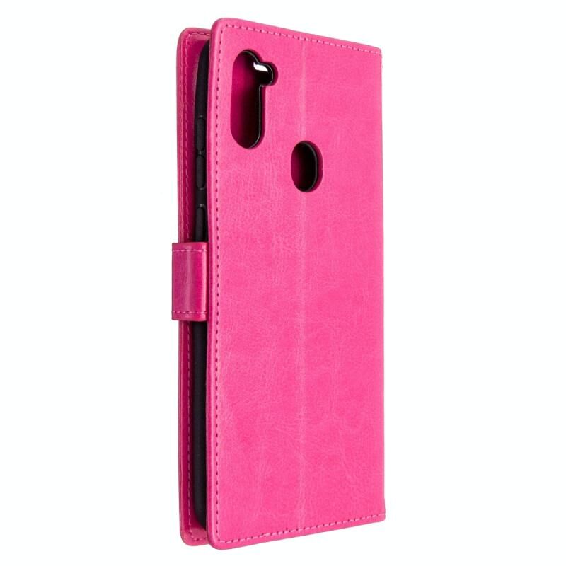 Για Galaxy A11 Crazy Horse Υφή οριζόντια Flip δερμάτινη θήκη με θήκη & υποδοχές για κάρτες & πορτοφόλι & πλαίσιο φωτογραφιών (Ροζέ κόκκινο)