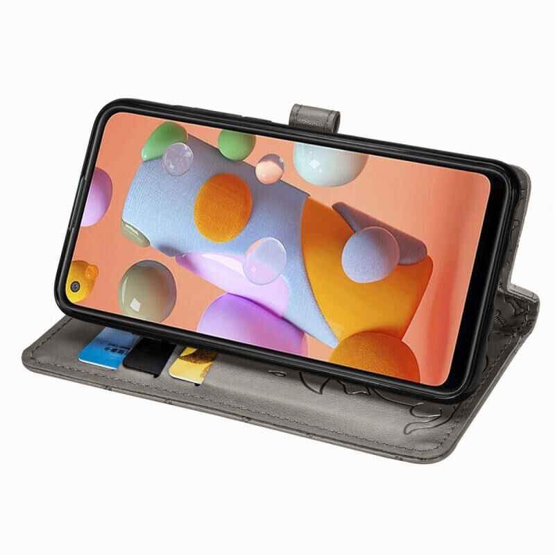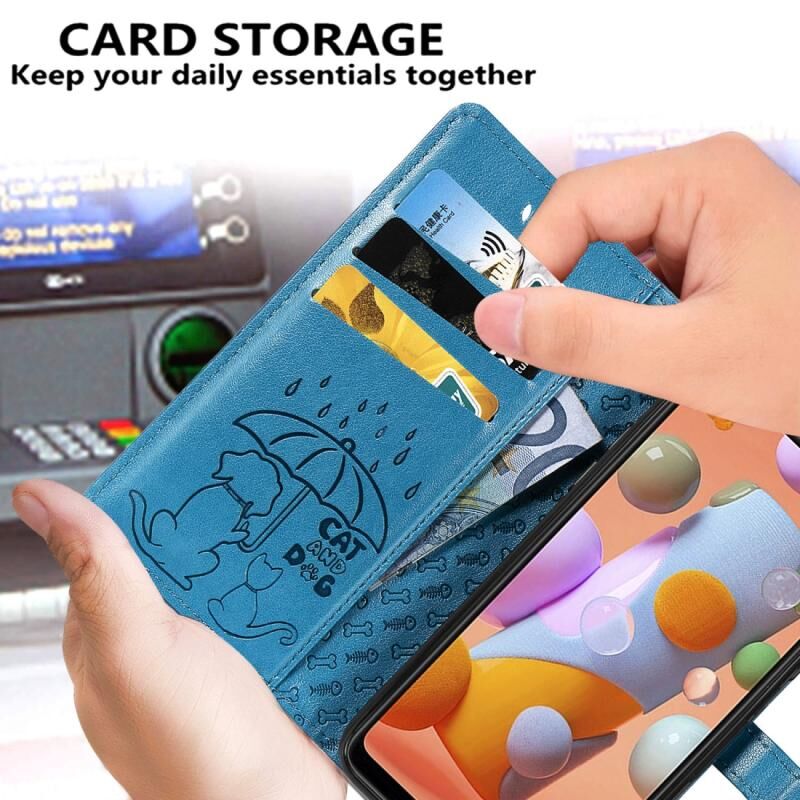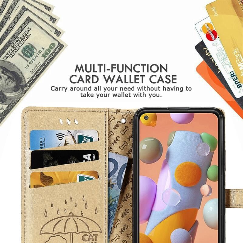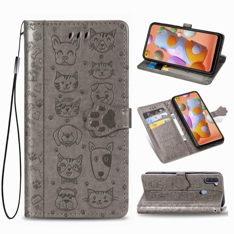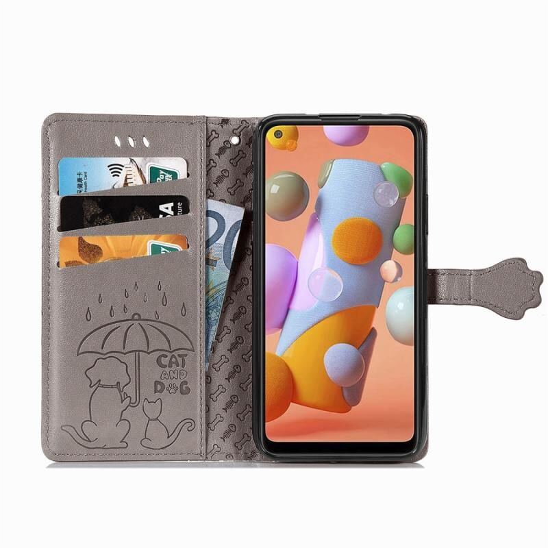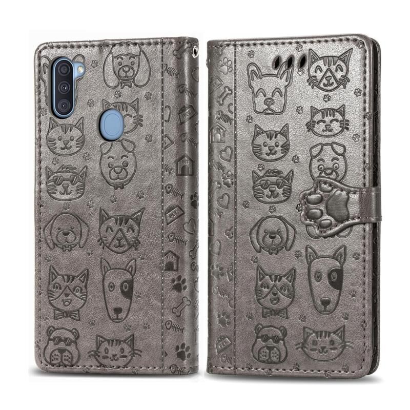 Θήκη δέρματος οριζόντιας αναδίπλωσης με ανάγλυφα σχέδια γατούλας και σκυλάκι για Galaxy A11, με βάση στήριξης / υποδοχή κάρτας / πορτοφόλι / κορδόνι (Ροζ)