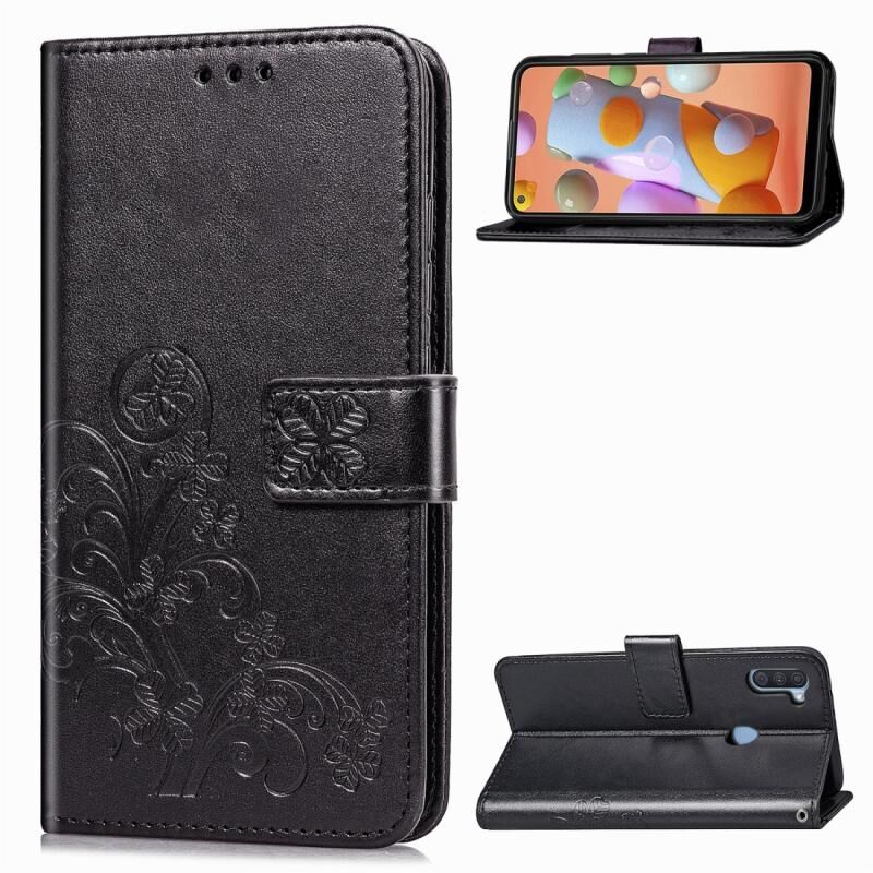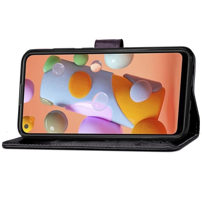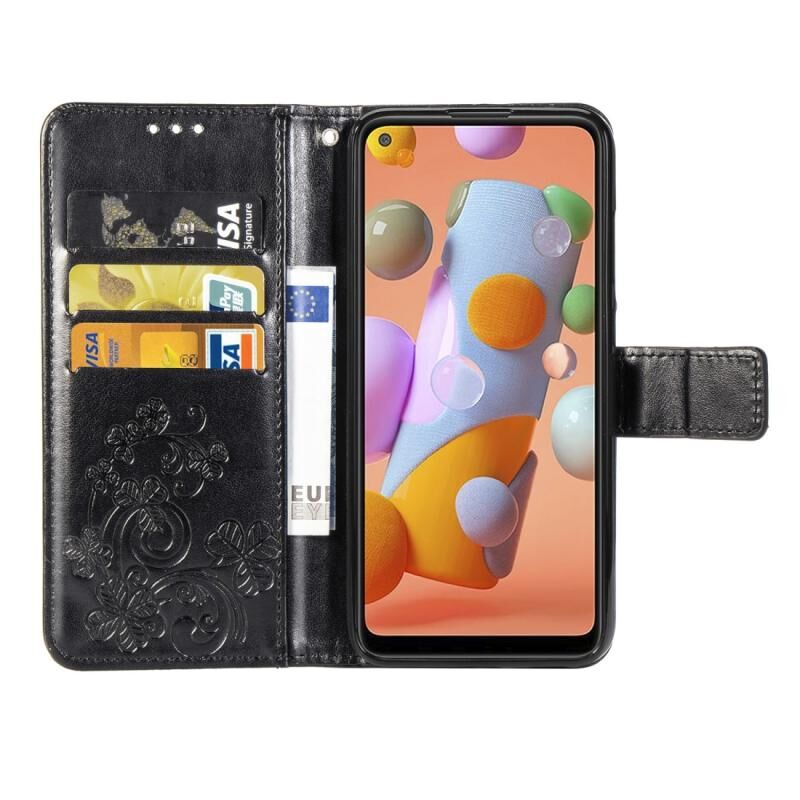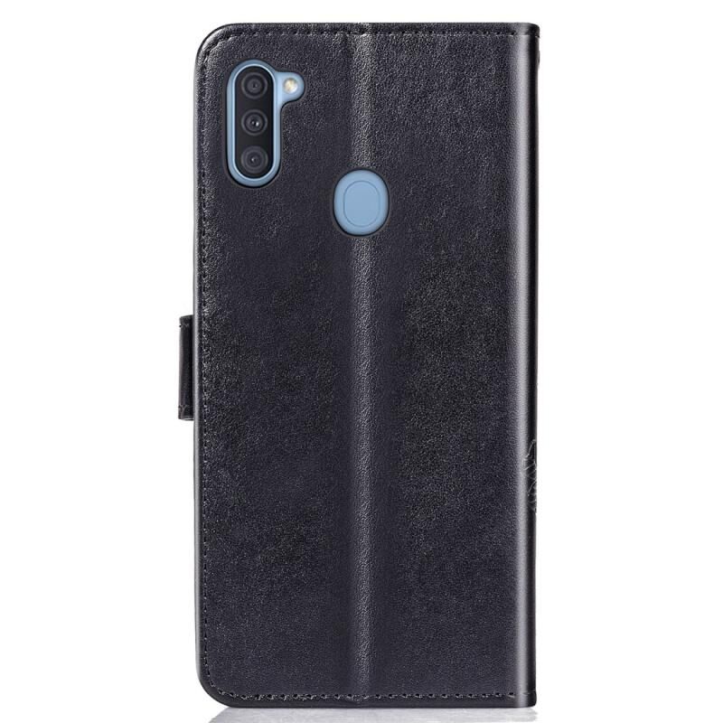 Για Galaxy A11 Θήκη Προστασίας Κινητού Δέρμα με Κούμπωμα Τριφυλλιού, ανάγλυφο, με Λουρί, Θήκη Καρτών, Πορτοφόλι & Λειτουργία Στήριξης (Μαύρο)