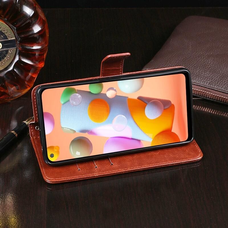 Για Galaxy A11 idewei Crazy Horse Texture Horizontal Flip Leather Case με θήκη για κάρτες & υποδοχές & πορτοφόλι (καφέ) (Καφέ)