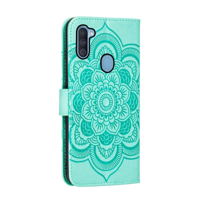 Για Galaxy A11 Mandala ανάγλυφο μοτίβο οριζόντια Flip PU δέρμα υπόθεση με θήκη & υποδοχές για κάρτες & Walle & Lanyard (πράσινο)