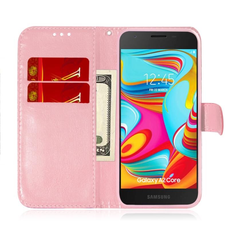 Θήκη για Galaxy A2 Core, Μονόχρωμη, Πολύχρωμη, Μαγνητικό Κούμπωμα, Οριζόντια, Δερμάτινη PU με Στήριξη, Θήκες Καρτών, Πορτοφόλι & Λουρί (Ροζ)
