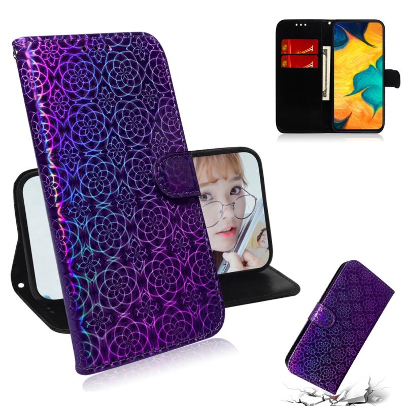 For Galaxy A20 / A30 Solid Color Colorful Magnetic Buckle Horizontal Flip PU Leather Case with Holder & Card Slots & Wallet & Lanyard(Purple)