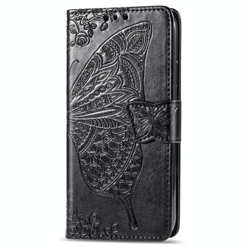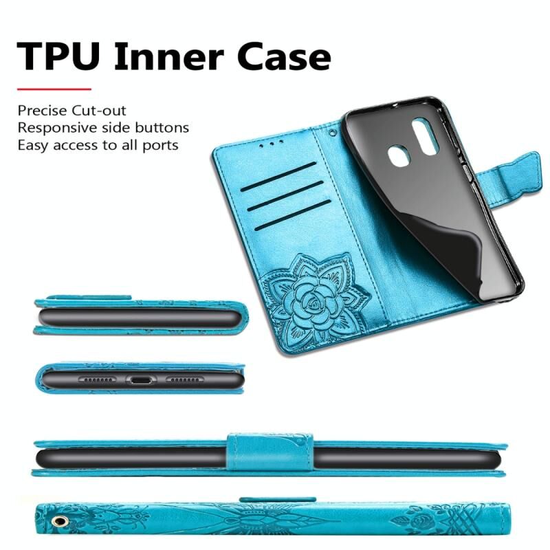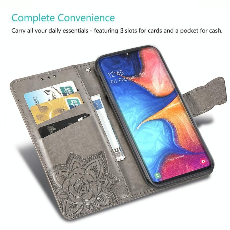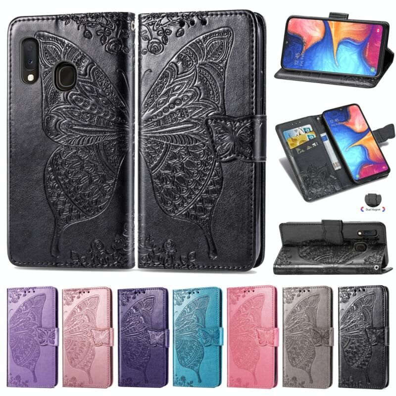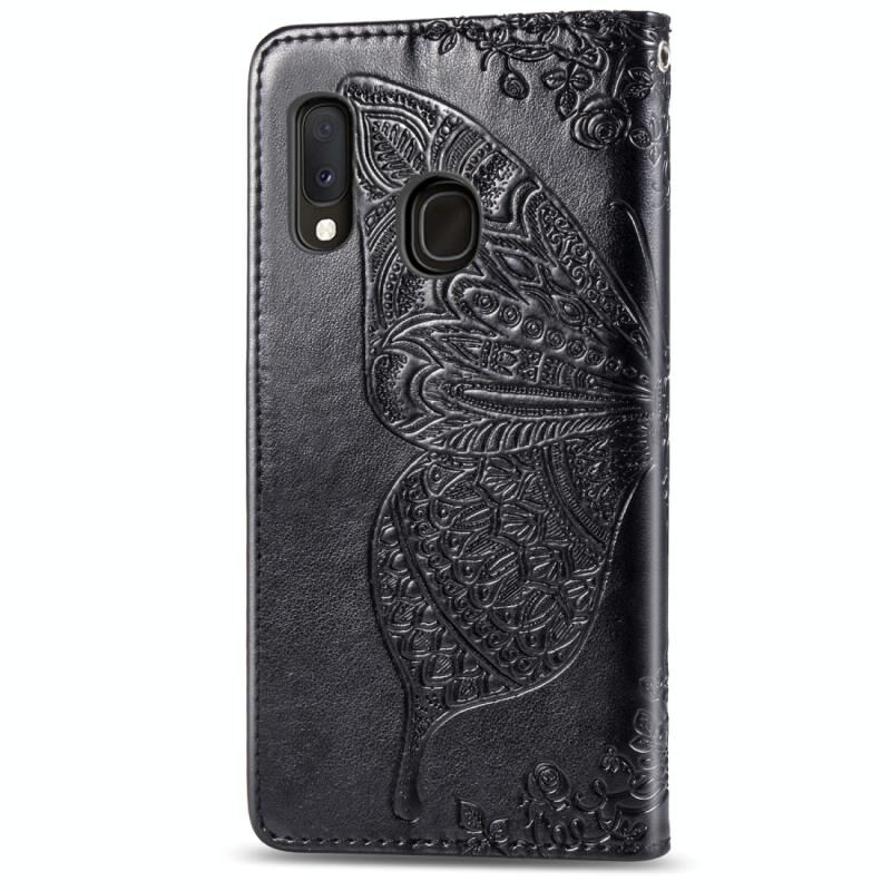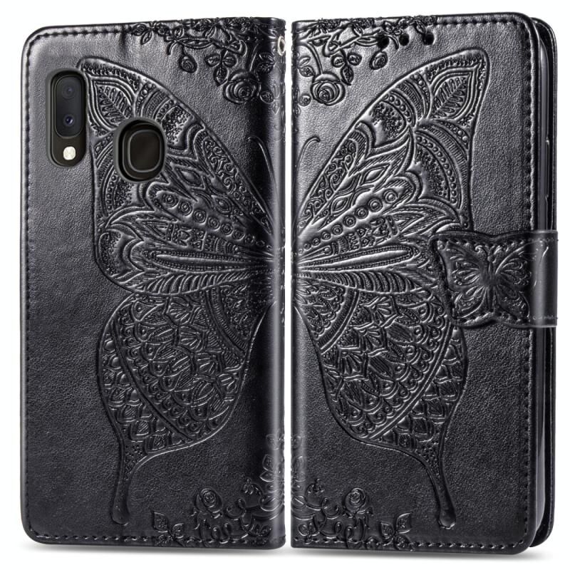 Για Galaxy A20e πεταλούδα αγάπη λουλούδια ανάγλυφο οριζόντια Flip δερμάτινη θήκη με κάτοχο & υποδοχές για κάρτες & πορτοφόλι & κορδόνι (μαύρο)
