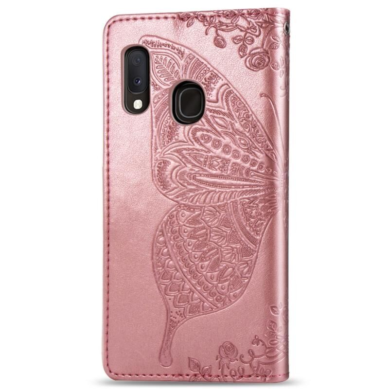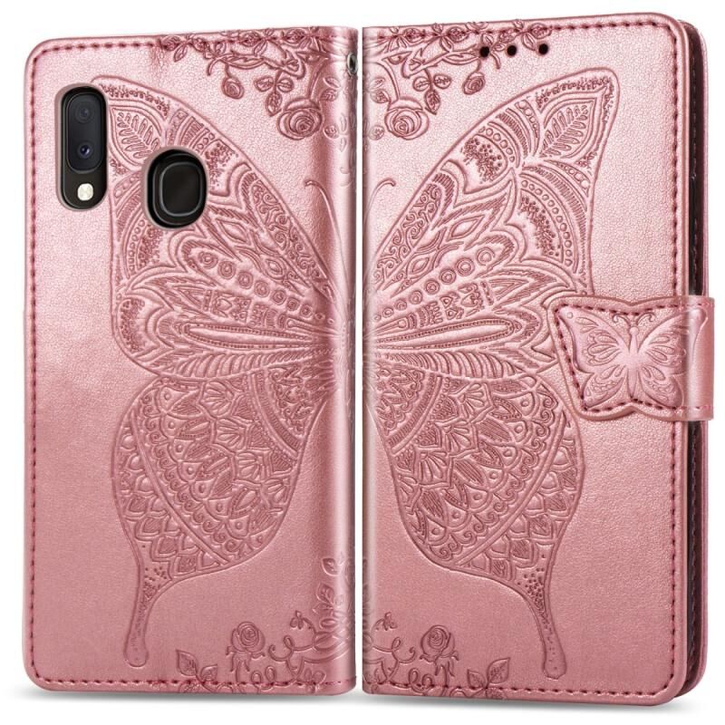 Για Galaxy A20e πεταλούδα αγάπη λουλούδια ανάγλυφο οριζόντια Flip δερμάτινη θήκη με κάτοχο & υποδοχές για κάρτες & πορτοφόλι & Lanyard (Rose χρυσό)