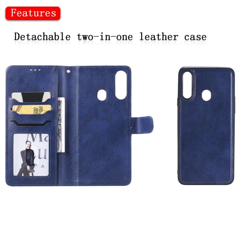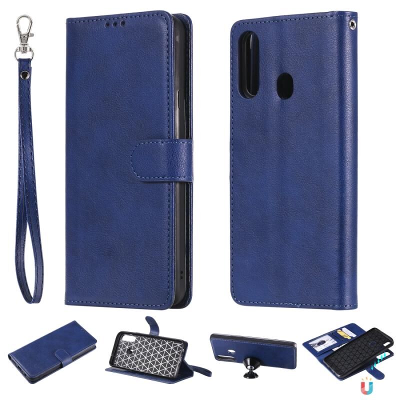 Για Galaxy A20s 2 σε 1 Αμιγές χρώμα Αποσπώμενη PU δερμάτινη θήκη με υποδοχές για κάρτες & μαγνητική θήκη & κορνίζα φωτογραφιών & πορτοφόλι & λουράκι (μπλε)