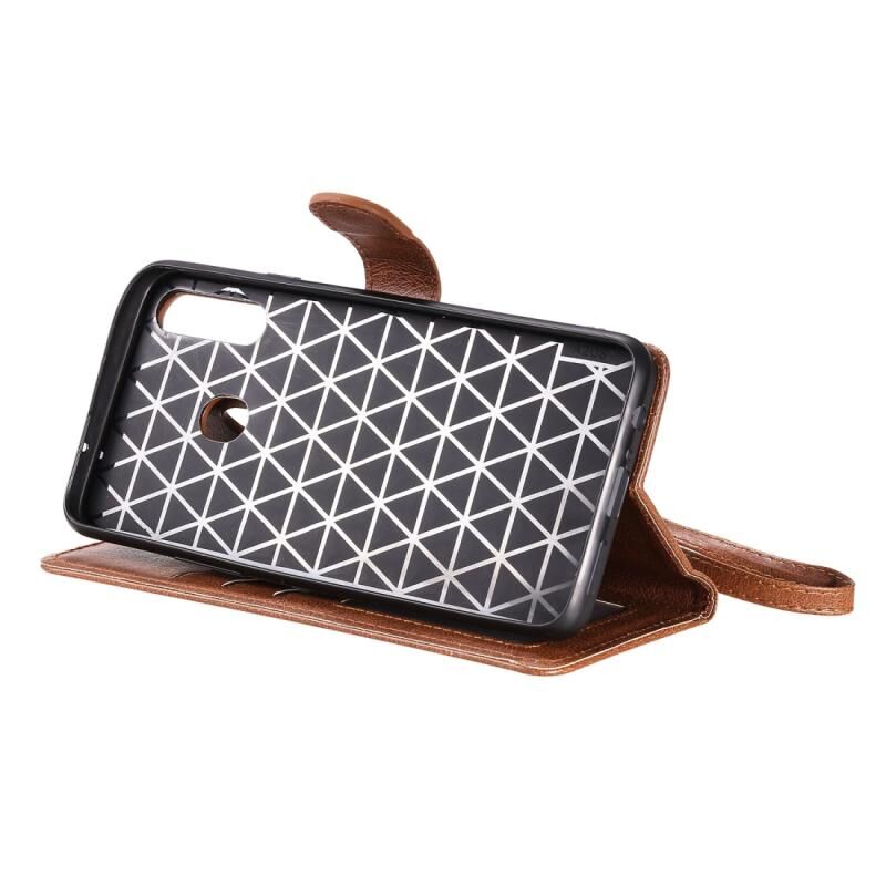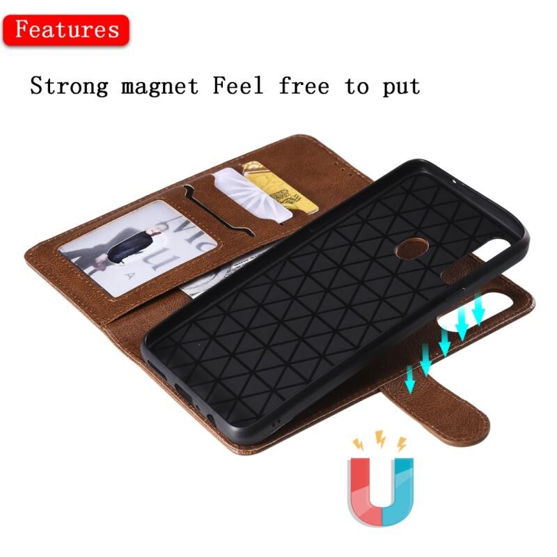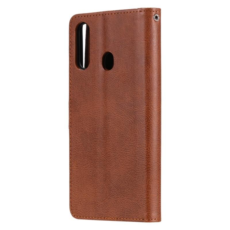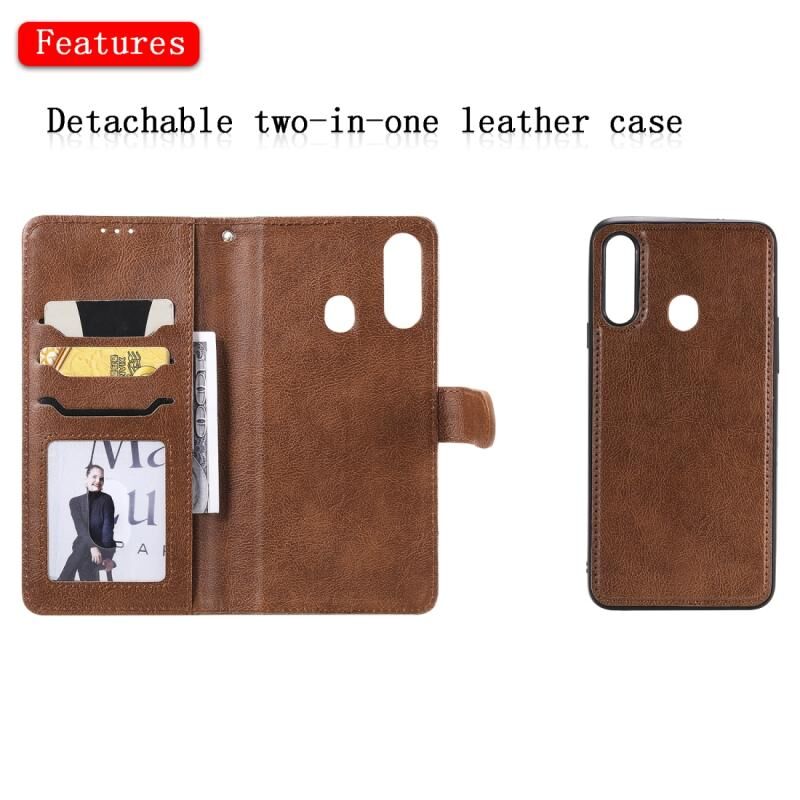 Για Galaxy A20s 2 σε 1 Αμιγές χρώμα Αποσπώμενη PU δερμάτινη θήκη με υποδοχές για κάρτες & μαγνητική θήκη & κορνίζα φωτογραφιών & πορτοφόλι & λουράκι (καφέ)