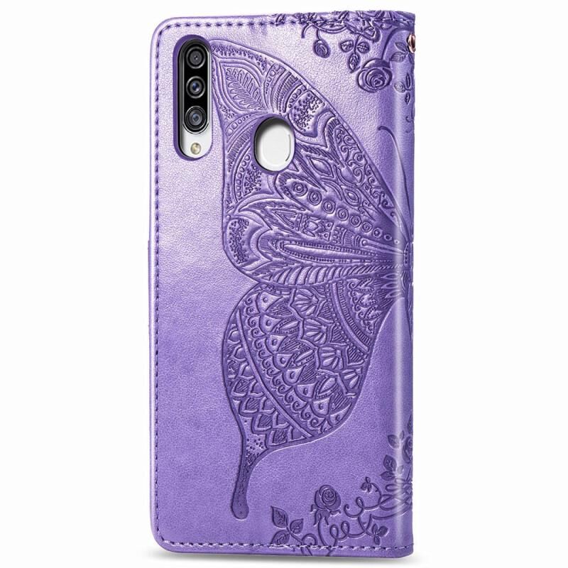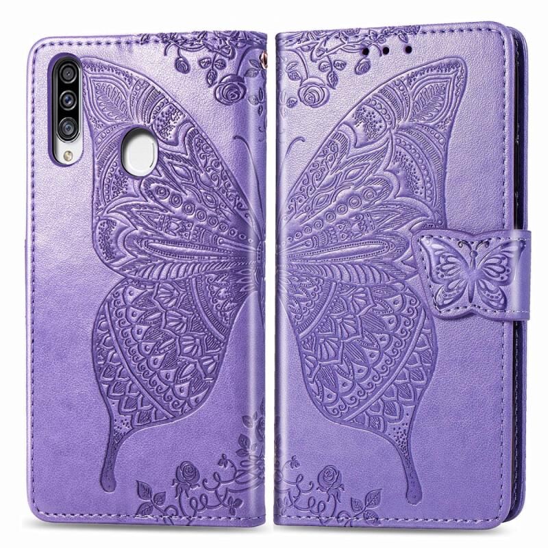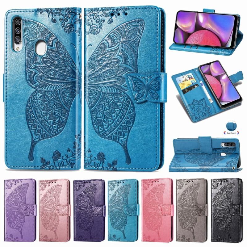 Θήκη βιβλίου από δέρμα με οριζόντιο άνοιγμα για Galaxy A20S με ανάγλυφο σχέδιο πεταλούδας και λουλουδιών, με βάση στήριξης / υποδοχή κάρτας / πορτοφόλι / κορδόνι (Μαύρο)
