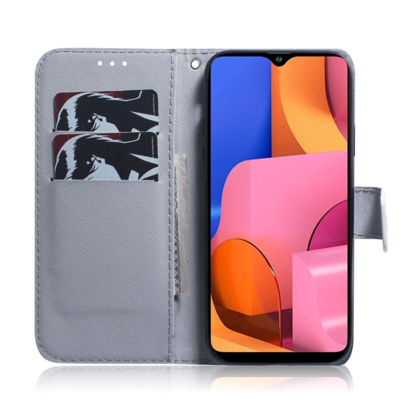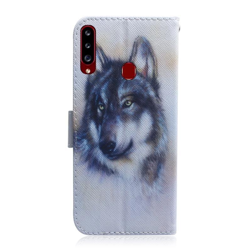 Θήκη για Galaxy A20S με έγχρωμο σχέδιο, οριζόντια αναδίπλωση από δερματίνη PU με βάση στήριξης & θήκες για κάρτες & πορτοφόλι (Λευκός Λύκος)