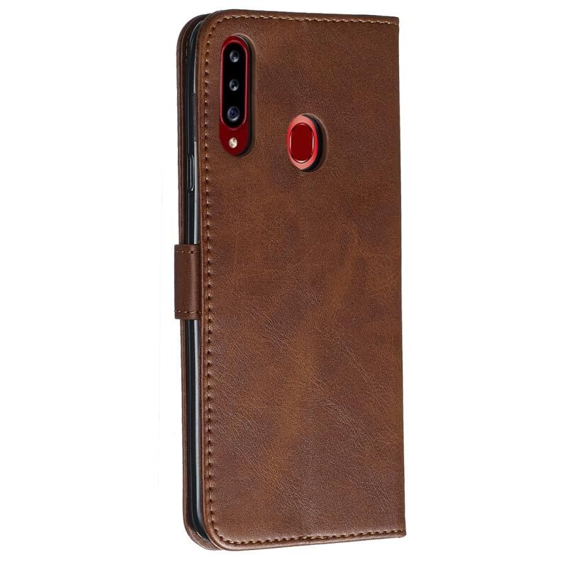 Για Galaxy A20s Μόδα μοσχάρι υφή φερμουάρ οριζόντια Flip PU δερμάτινη θήκη, με θήκη & υποδοχές για κάρτες & πορτοφόλι (Καφέ)