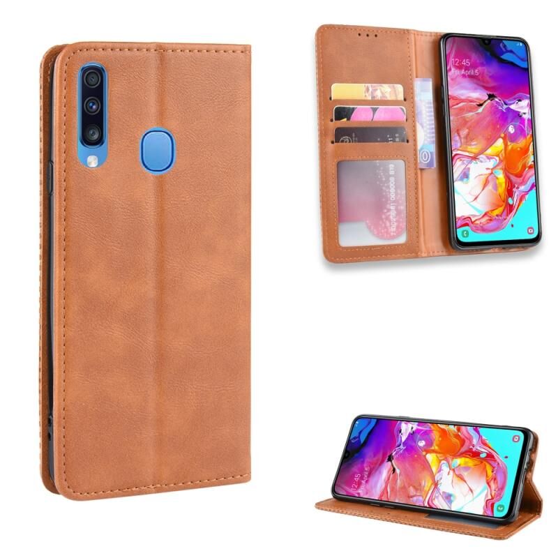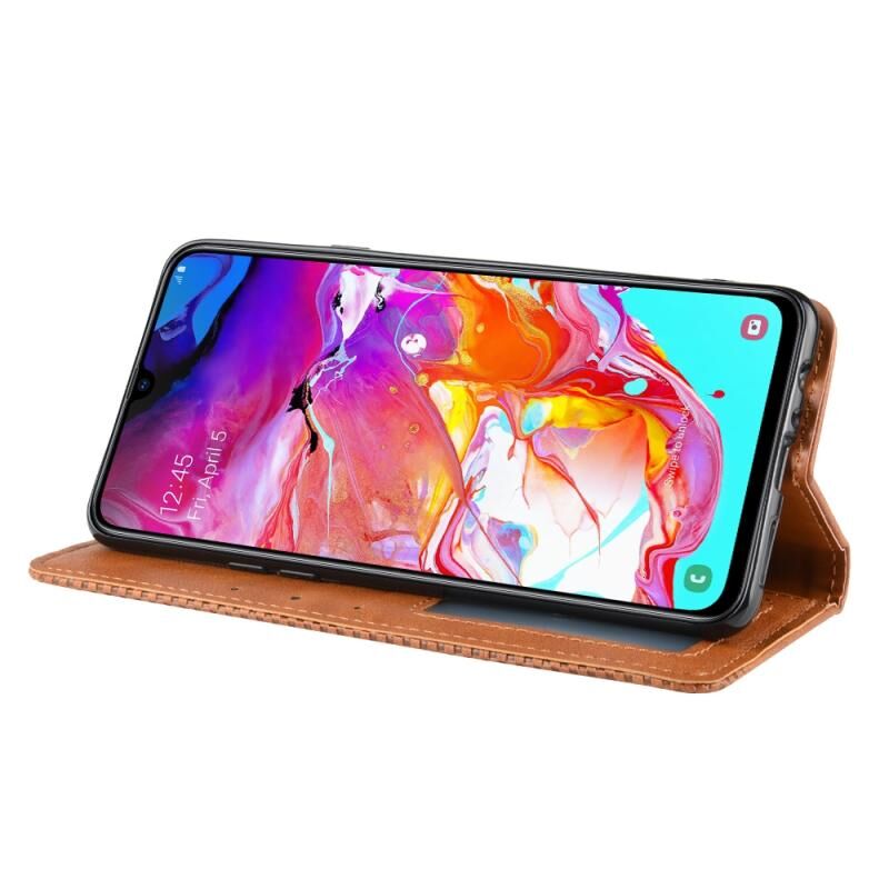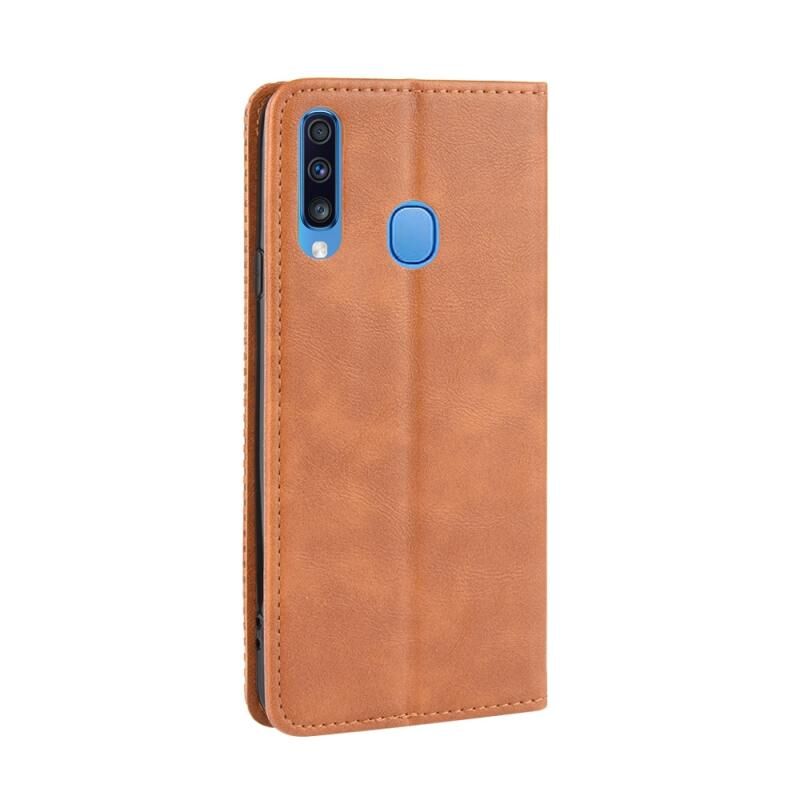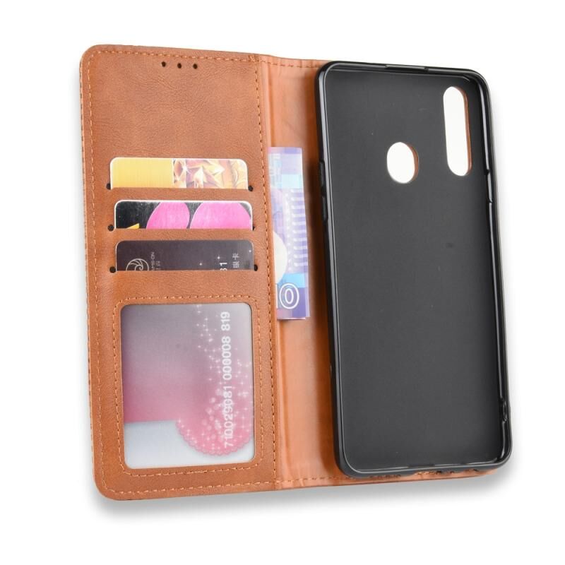 Θήκη δέρματος οριζόντιας αναδίπλωσης με μαγνητικό κούμπωμα και υφή Crazy Horse Retro για Galaxy A20s, με βάση στήριξης & υποδοχές καρτών & κορνίζα φωτογραφιών (Μαύρο)