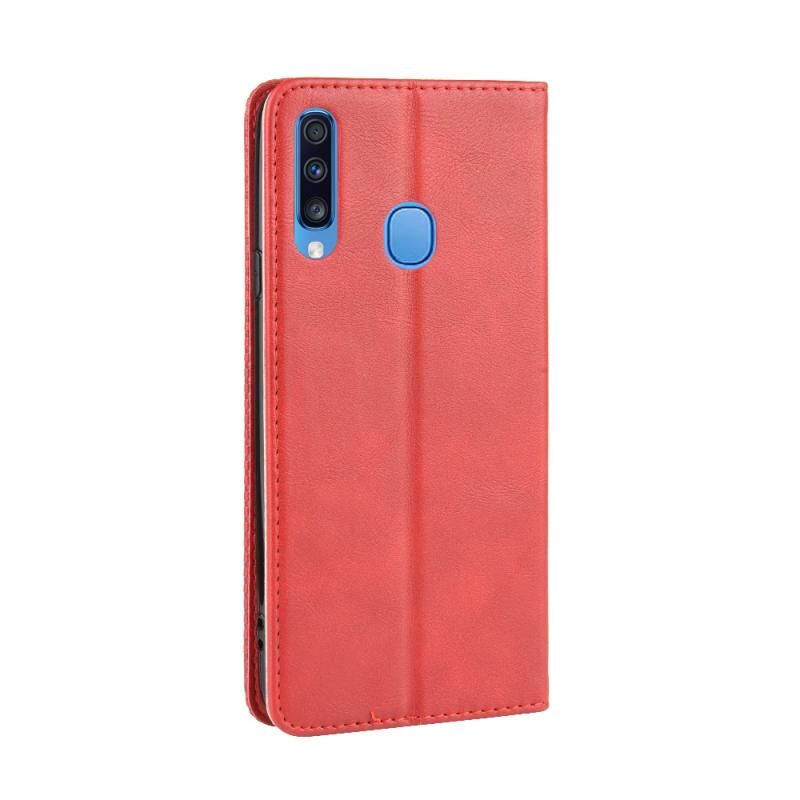 Θήκη δέρματος οριζόντιας αναδίπλωσης με μαγνητικό κούμπωμα και υφή Crazy Horse Retro για Galaxy A20s, με βάση στήριξης & υποδοχές καρτών & κορνίζα φωτογραφιών (Μαύρο)