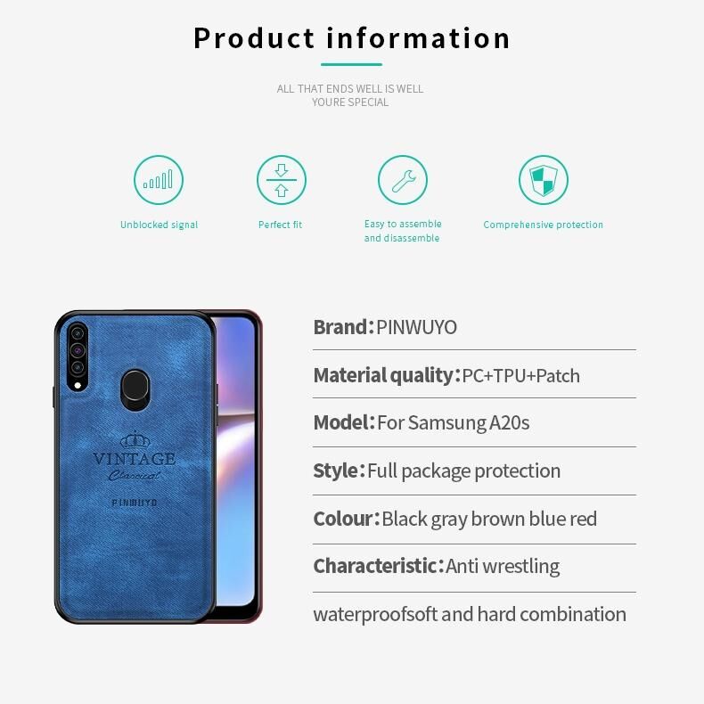 Για Galaxy A20S Θήκη Προστασίας PINWUYO Zun Series PC + TPU + Skin Αδιάβροχη και Αντικραδασμική, Πλήρως Καλυπτική (Μαύρο) (PINWUYO)