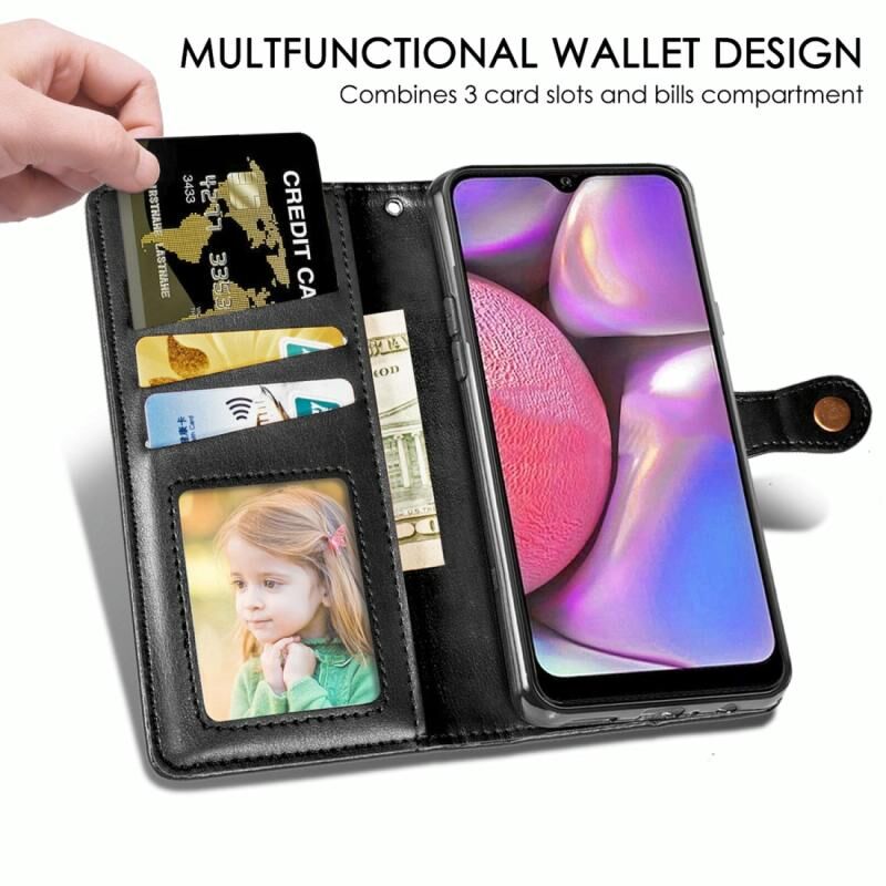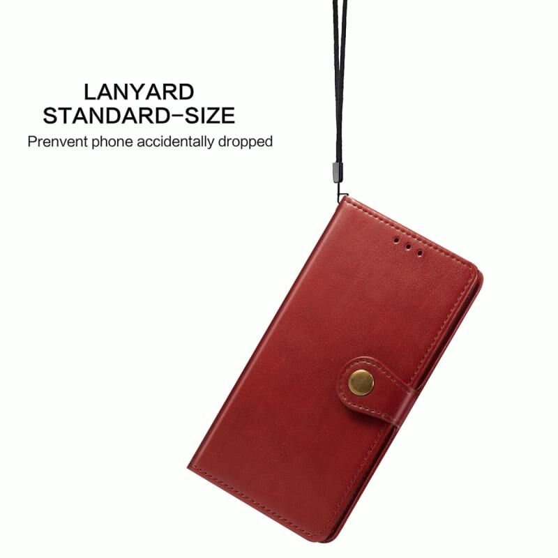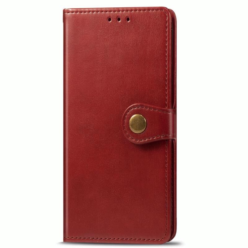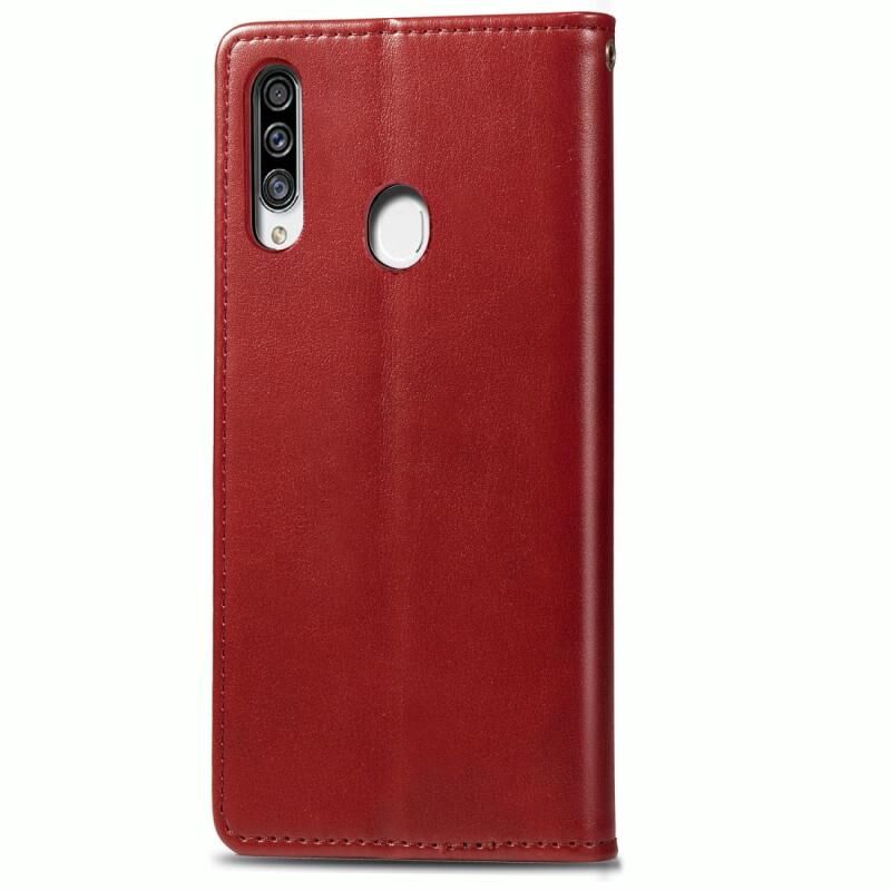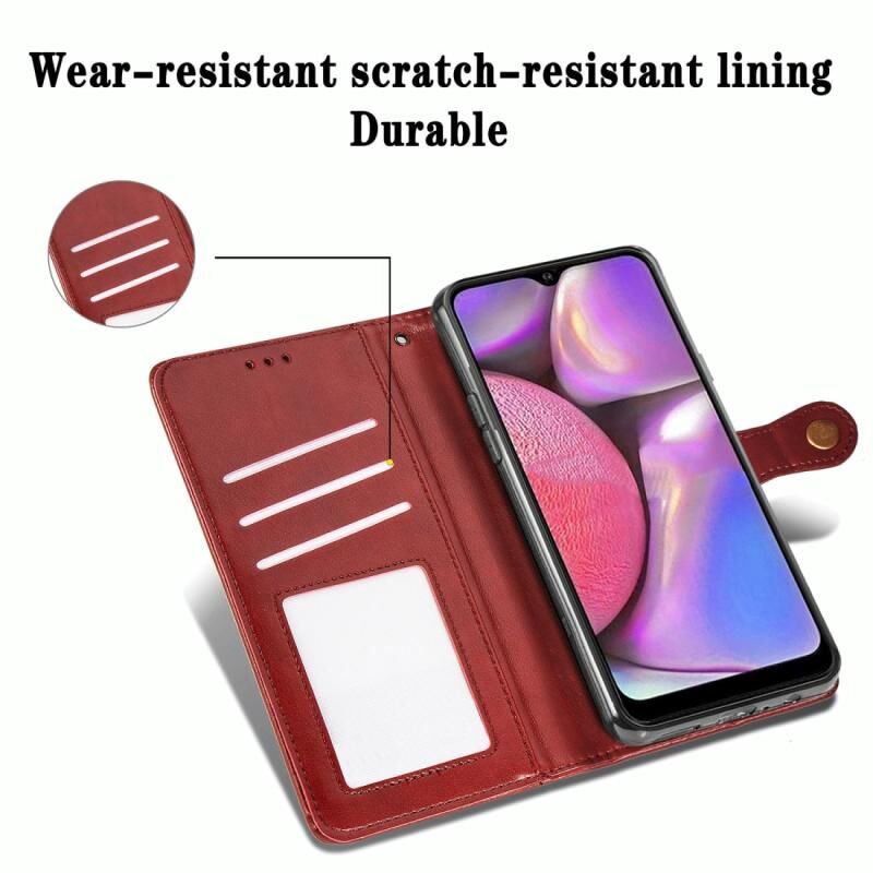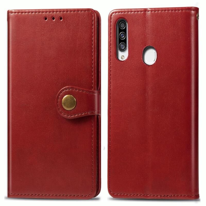 Για Galaxy A20S Ρετρό στερεό χρώμα δερμάτινη θήκη τηλεφώνου με αγκράφα & κορνίζα φωτογραφιών & υποδοχή κάρτας & πορτοφόλι & λειτουργία Stand (κόκκινο)