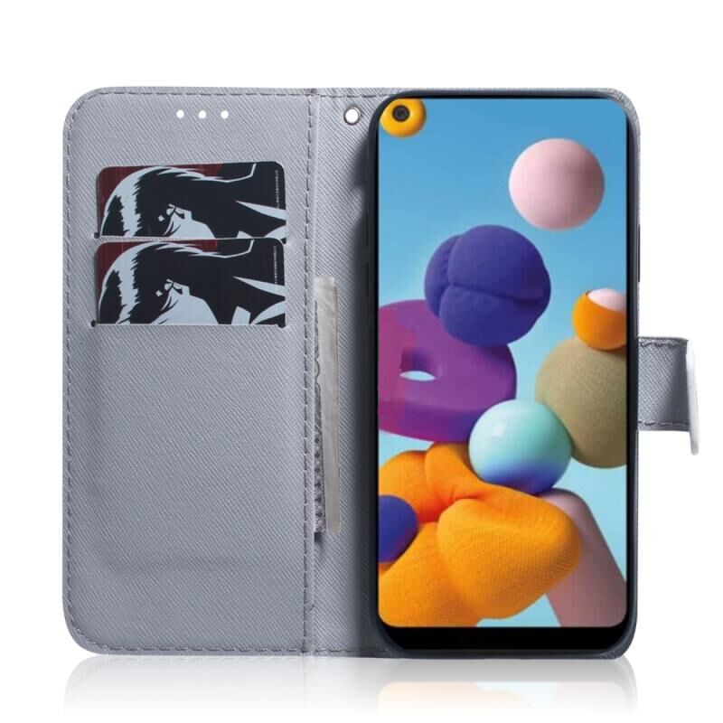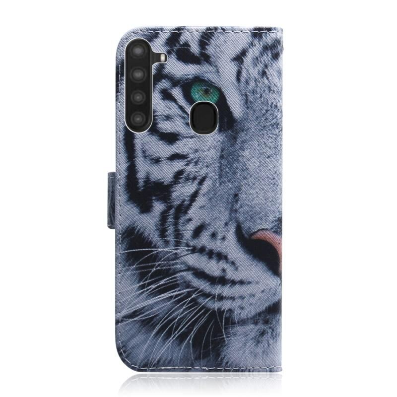 Θήκη δέρματος οριζόντιας αναδίπλωσης 3D με έγχρωμο σχέδιο για Galaxy A21 με βάση & υποδοχή κάρτας & πορτοφόλι (Τίγρης)